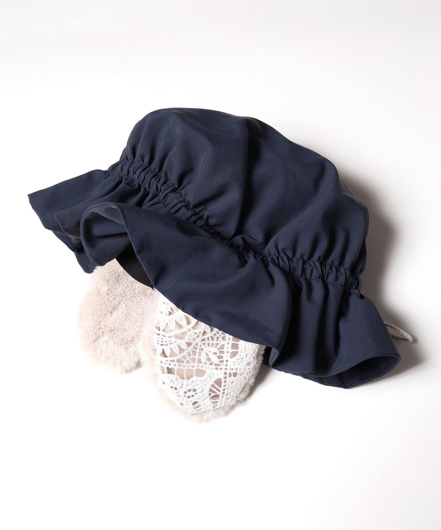 レースとエコファーの耳当て部分は取り外しが可能なので2通りの着こなしを楽しめます。