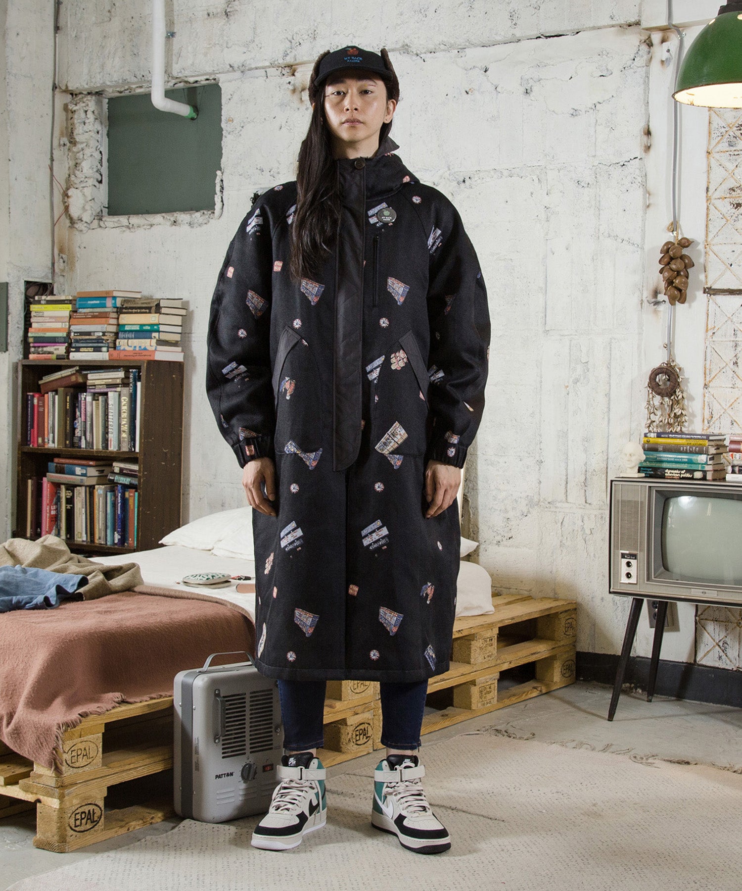 風に吹かれるオリジナルジャカード総柄バージョン、袖にキルティングを使用した無地バージョン。