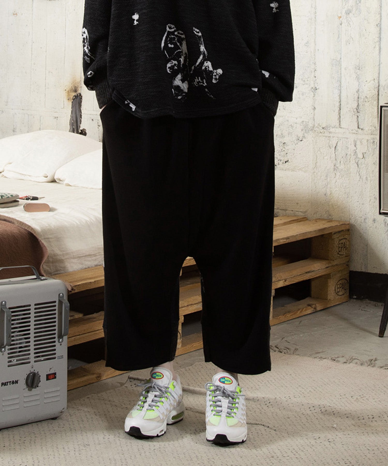 フロントはシンプル、バックスタイルはオリジナルのジャカード柄で個性をもたせたワイドパンツです。