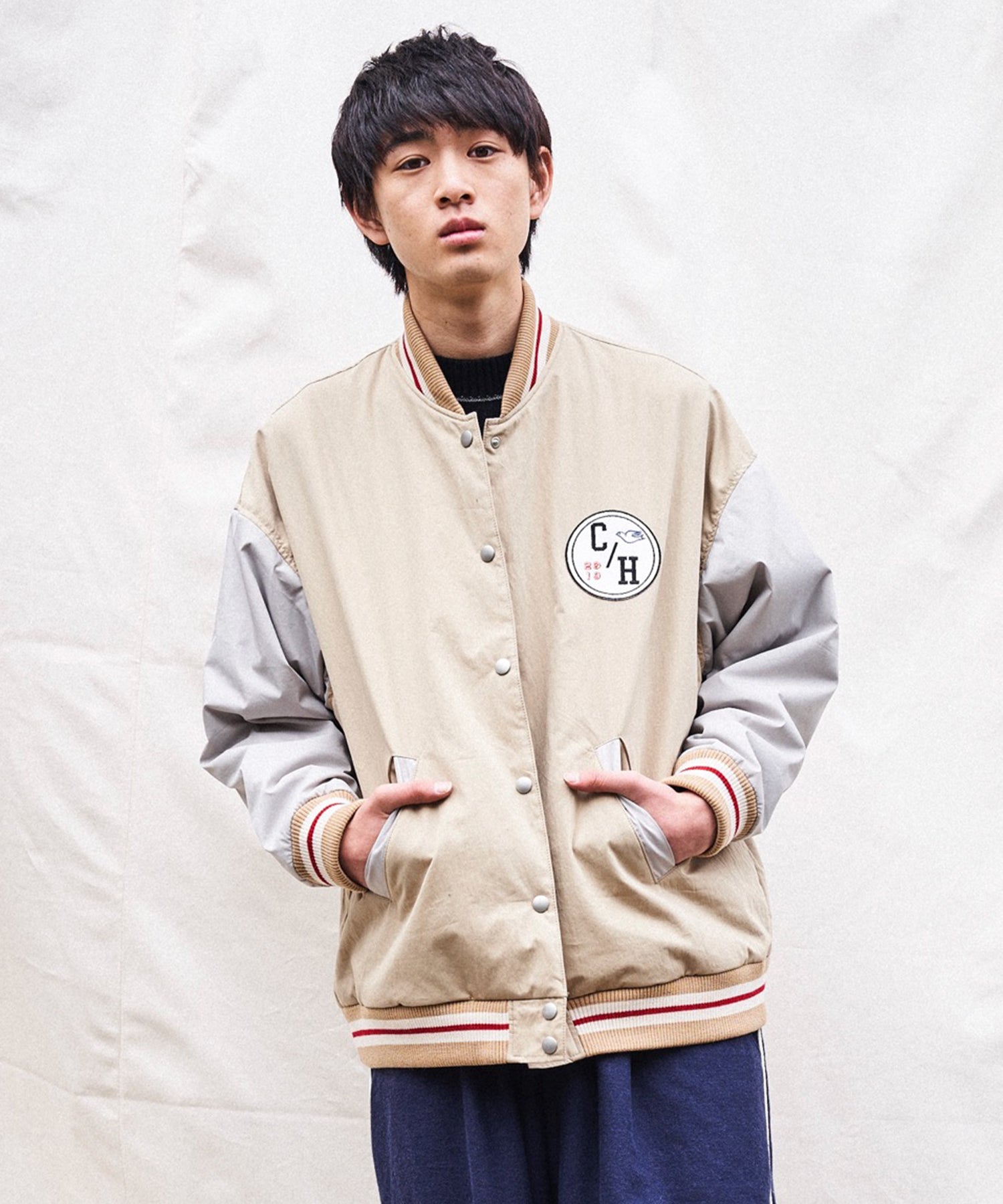 落ち着いた色味で大人の人も着やすいスタジャン。「タッチ」をイメージして作りました。