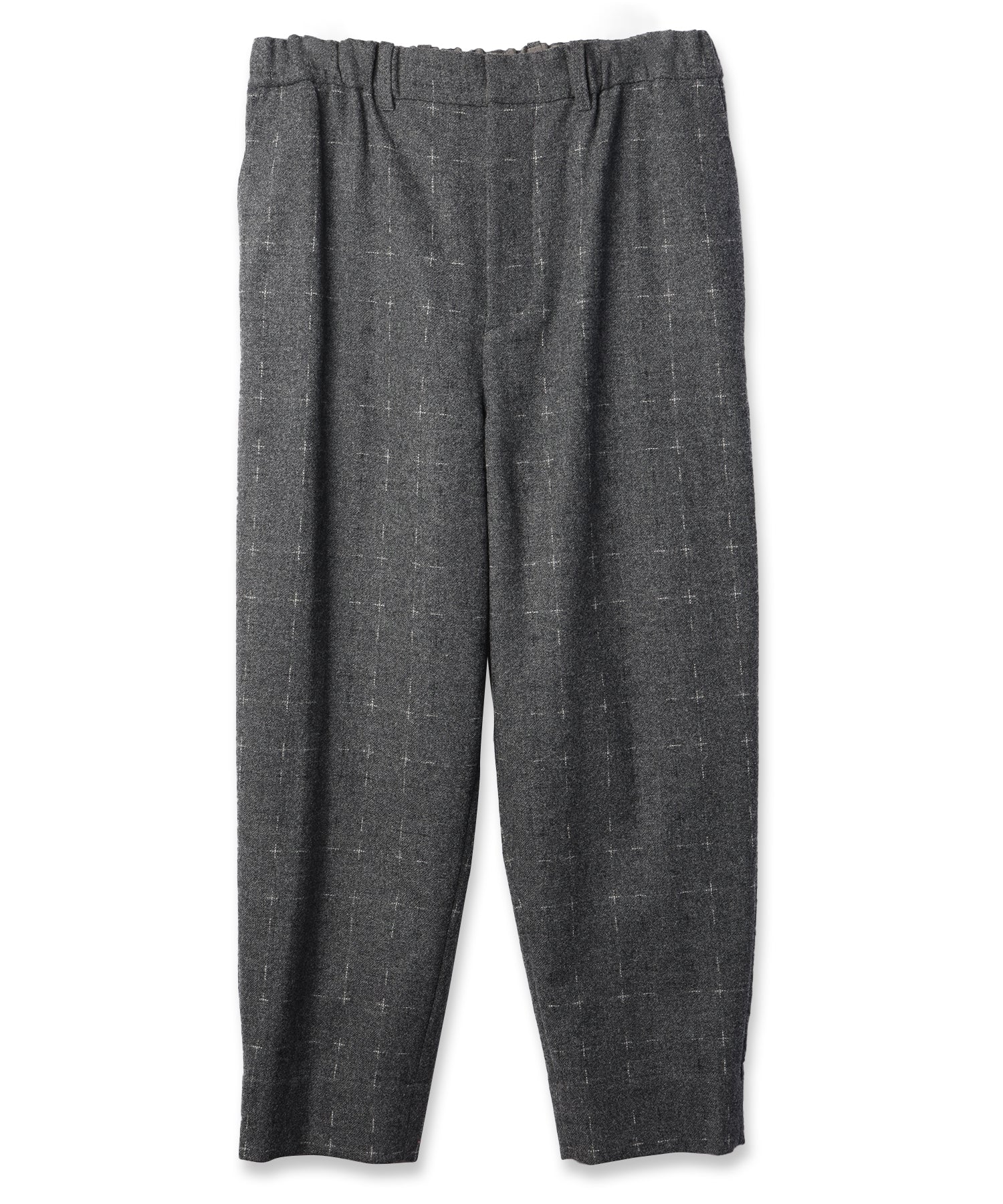 幅広い体型をカバーするイージー仕様のスラックスパンツ。