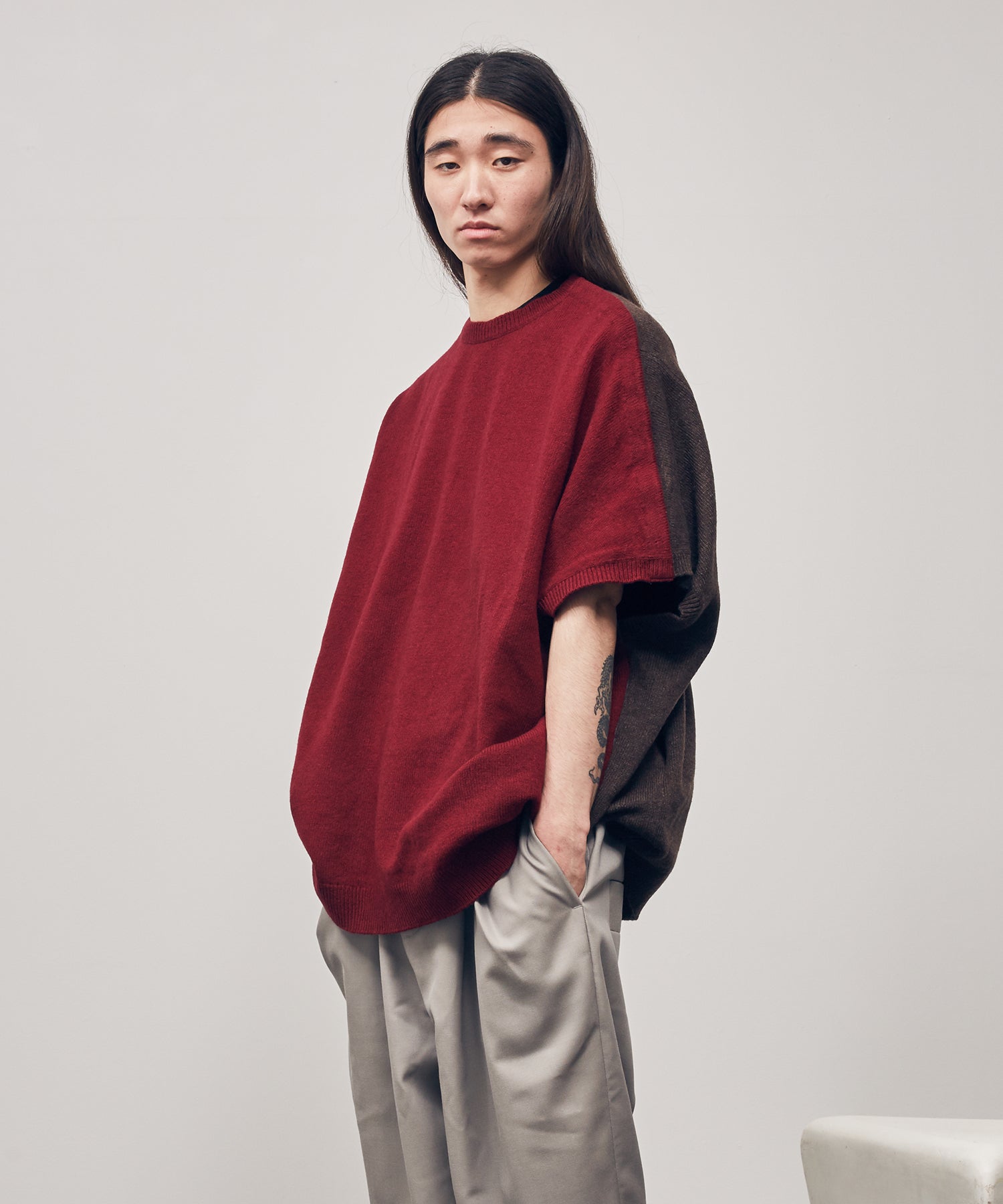 好きな色を組み合わせることで一枚のニットが完成します。異なる色味が作るカラー切り替えが特徴です。