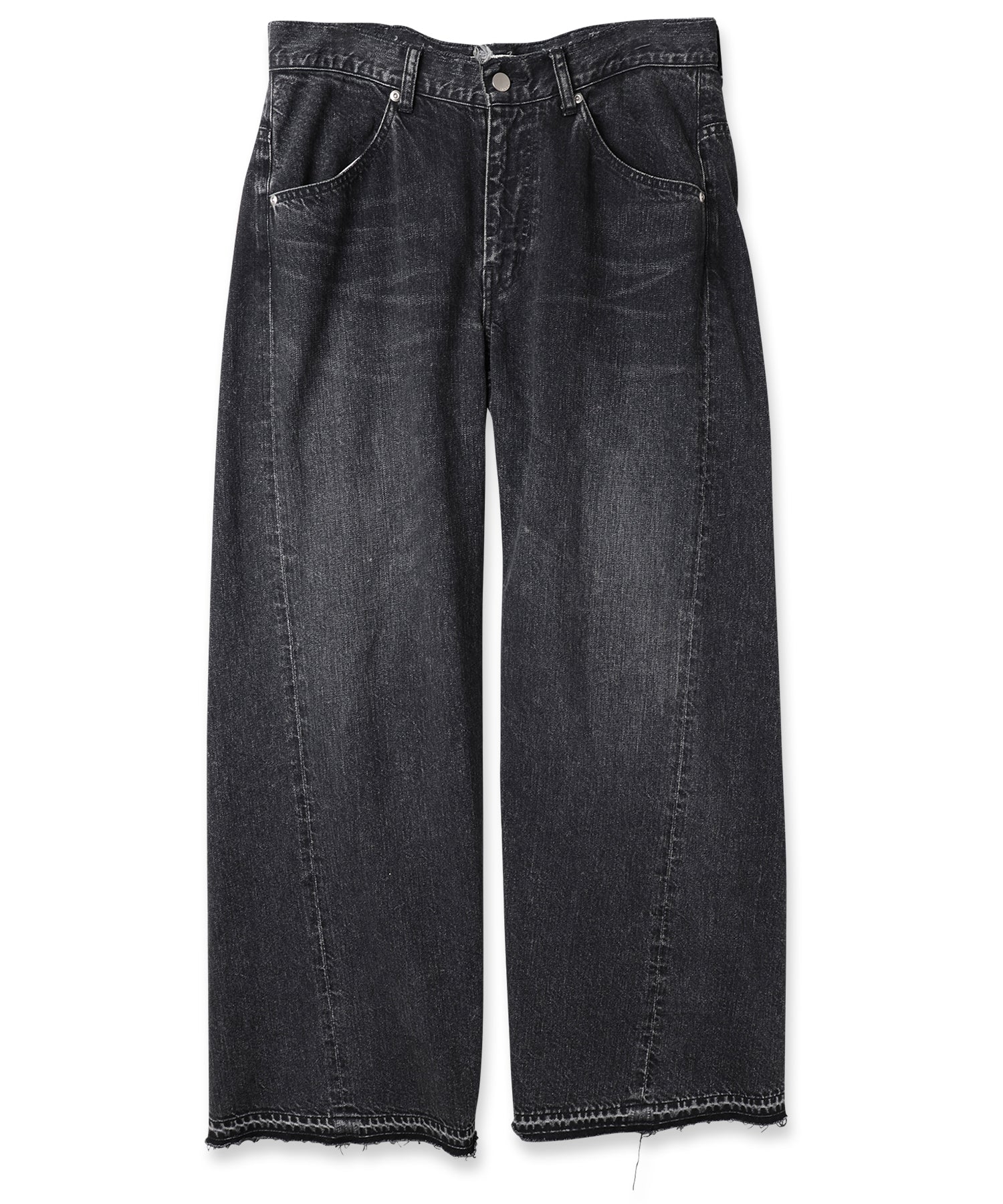 股上を浅めに設定することで腰回りはスッキリとしたシルエットが特徴的なワイドデニムです。