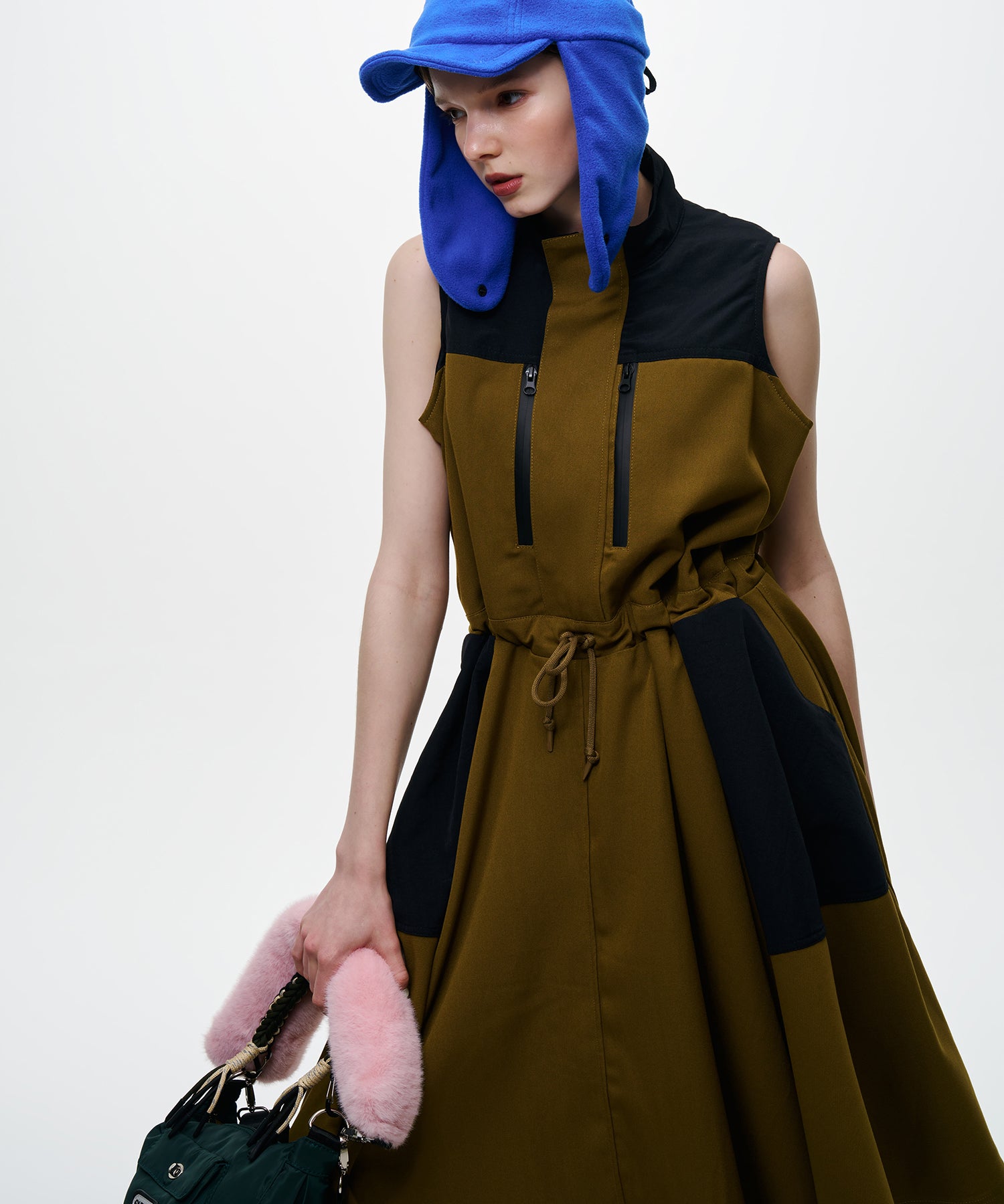 マウンテンパーカーを模した様なデザインのプルオーバーワンピース。