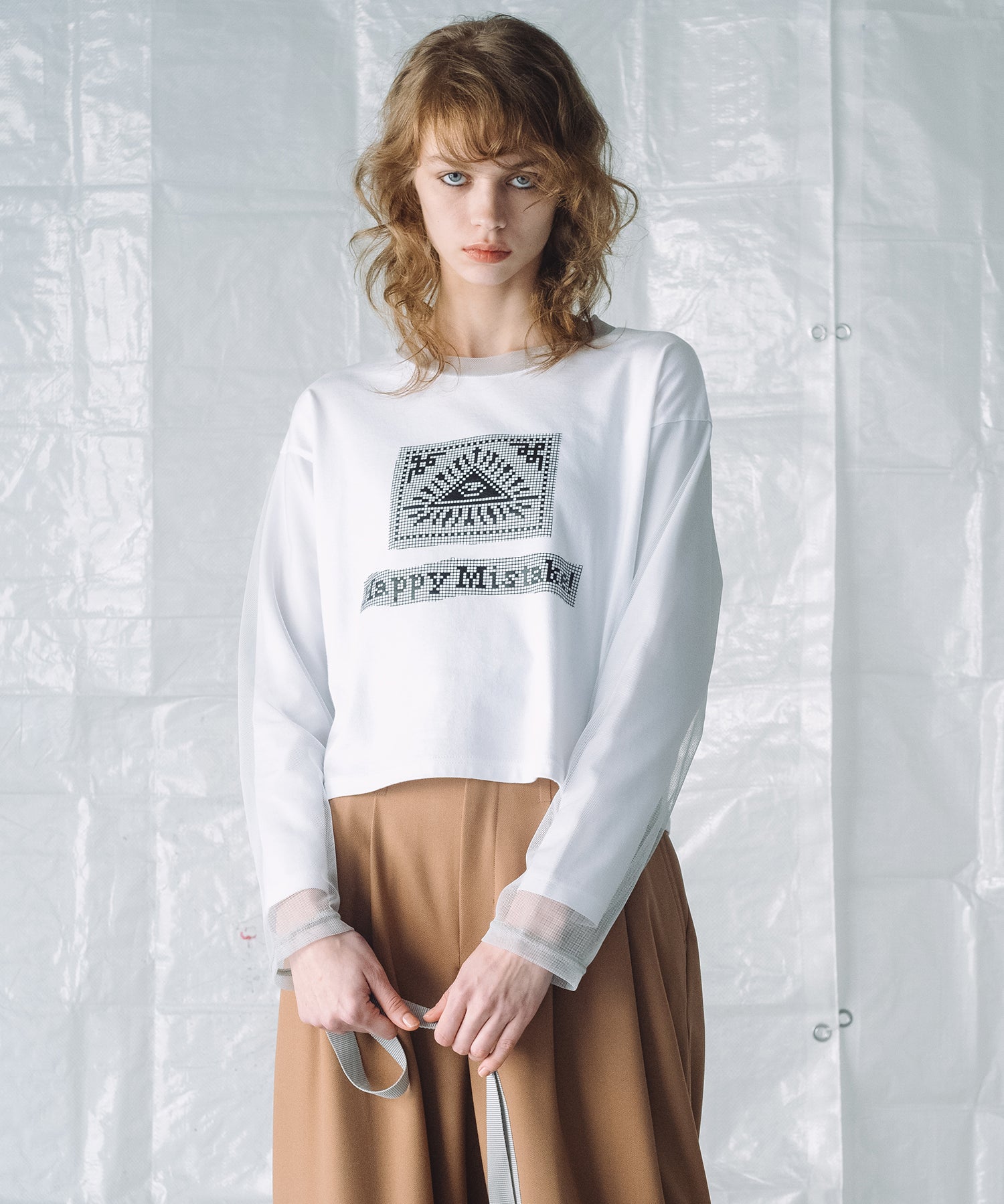 チュールを襟ぐりや袖部分などに合わせたデザインTシャツです。