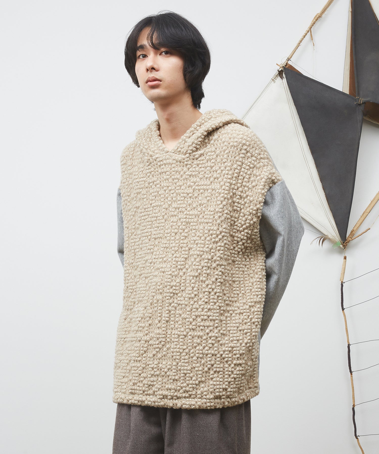 ニットの結び目が表面に現れ、表情を増したニット地など、シンプルさの中にとじこめたられた「こだわり」が見え隠れする服を展開しました。