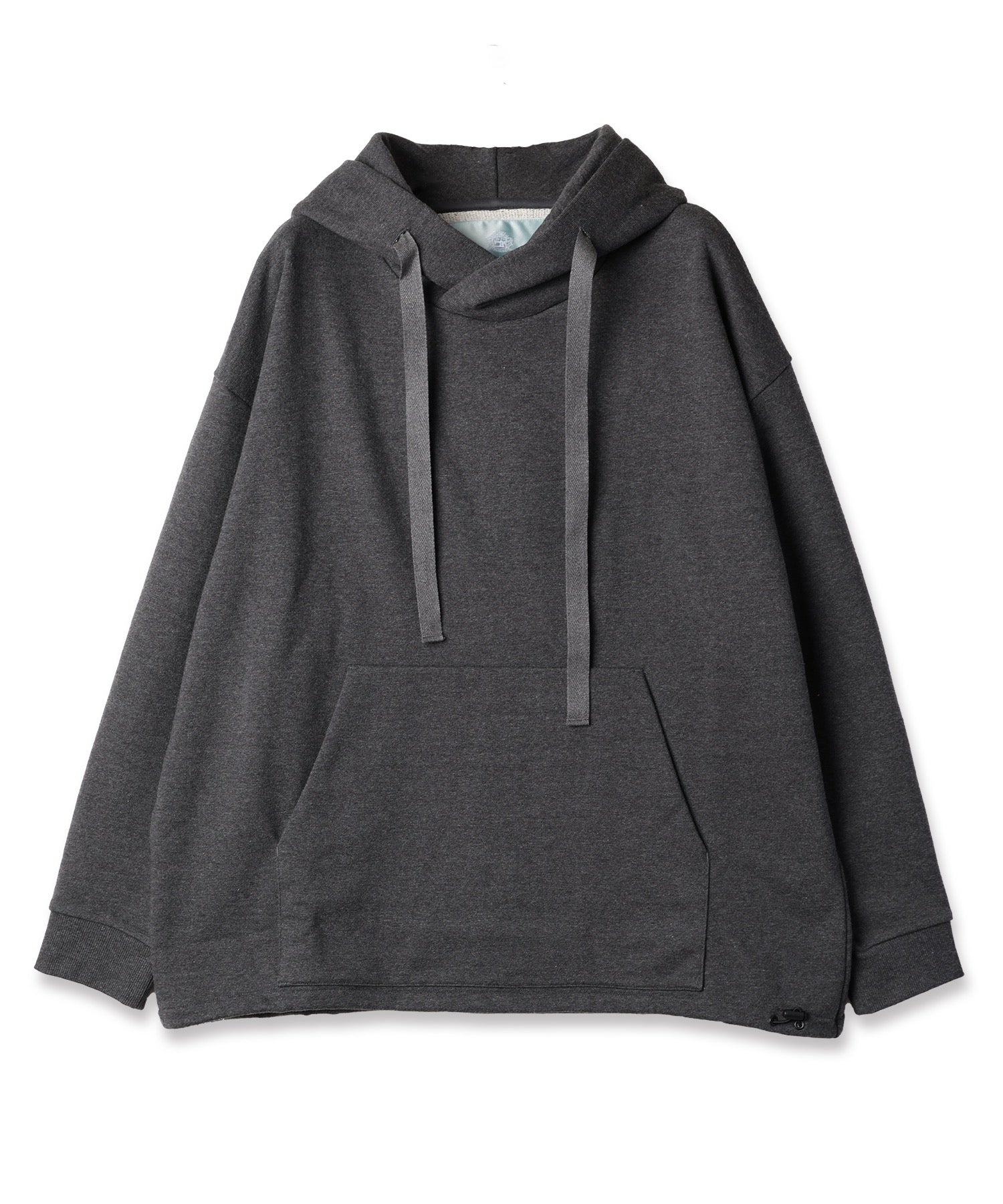 大きめにデザインされたフロントポケット。裾口にデザインされたドローコード。