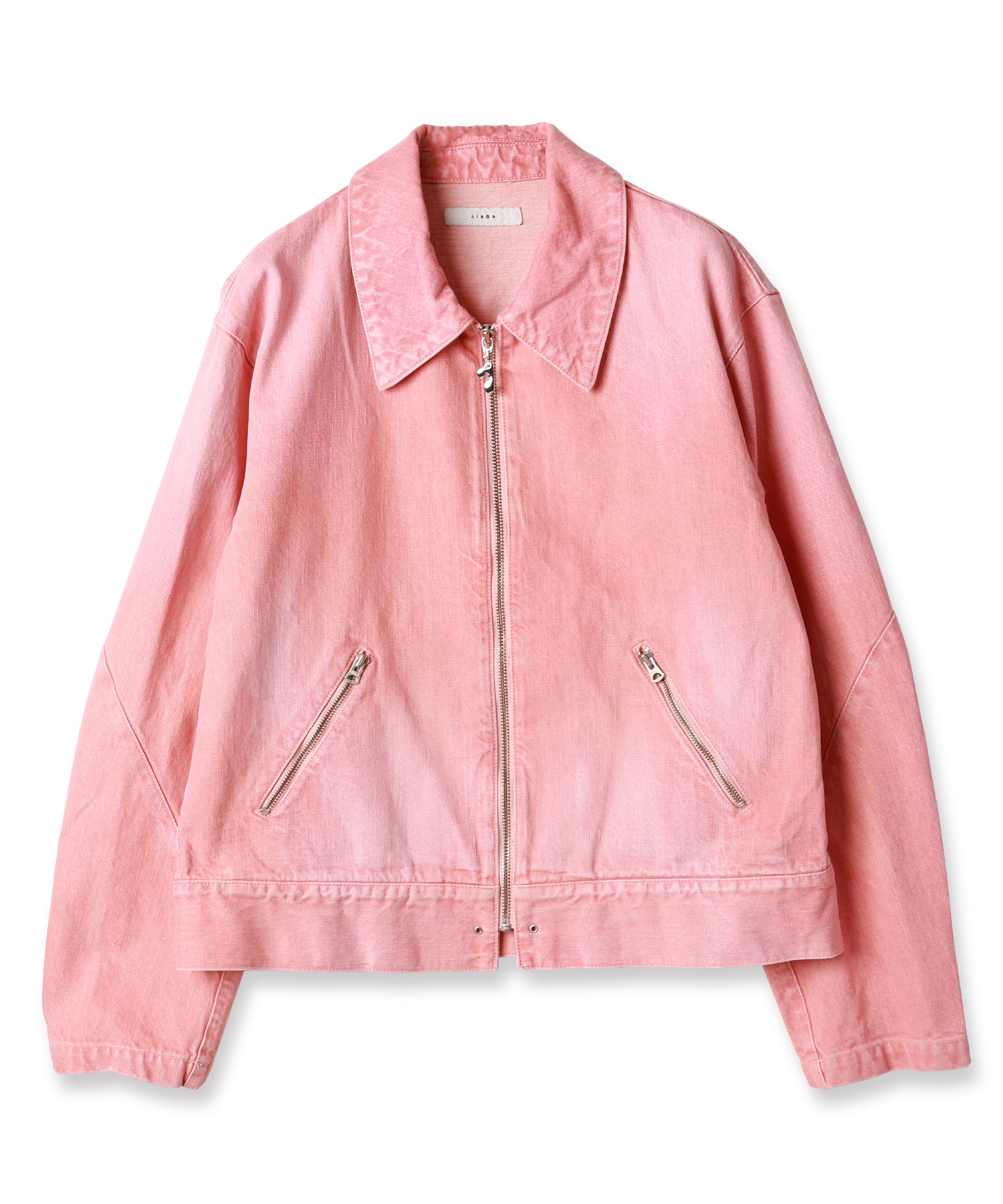 フロントにブランドロゴを模したオリジナルの引手を使用したデニムジップジャケット。