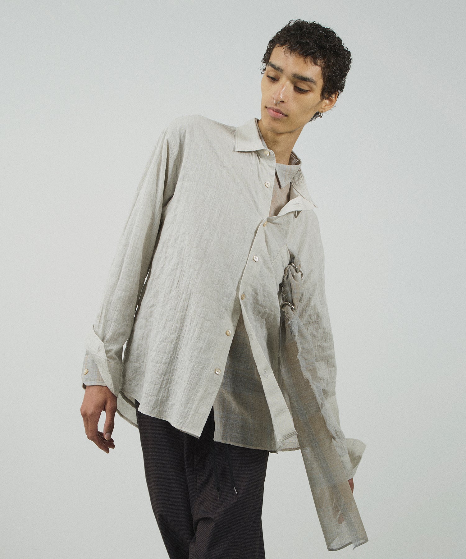 シワ加工を施し、生地に立体感と表情を持たせたシャツ。