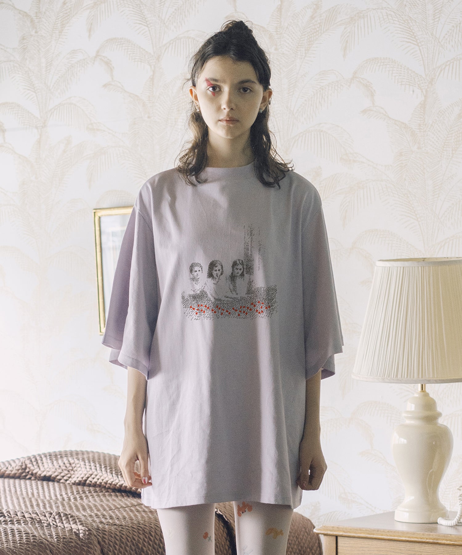 静かに暮らす姉妹を抒情的なタッチで描いたメランコリックなプリントをフロントにデザインしました。