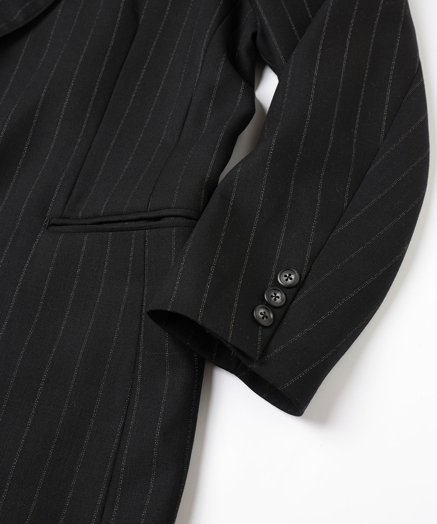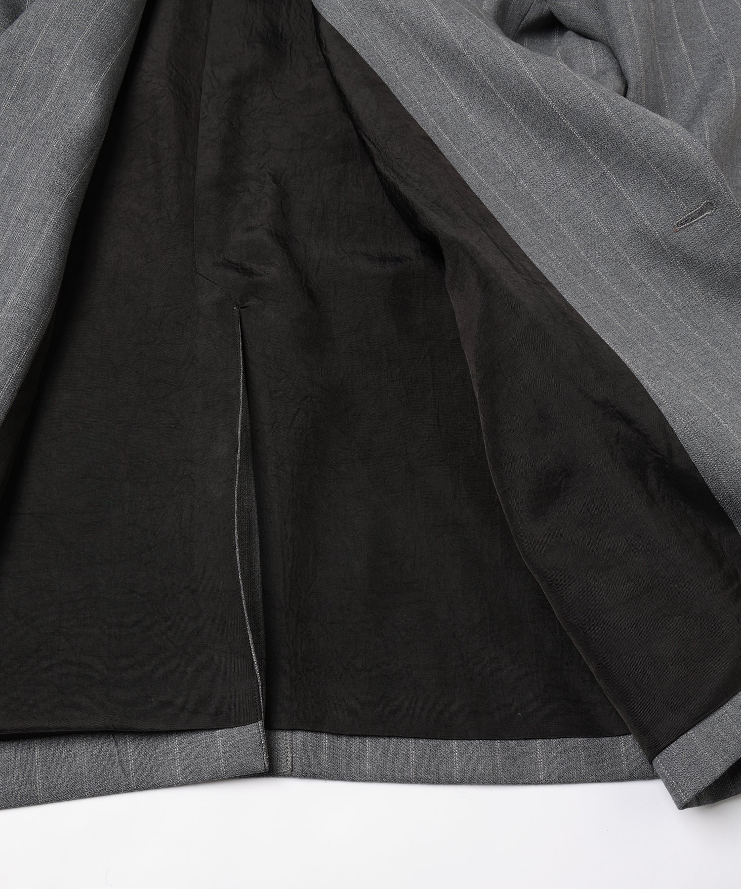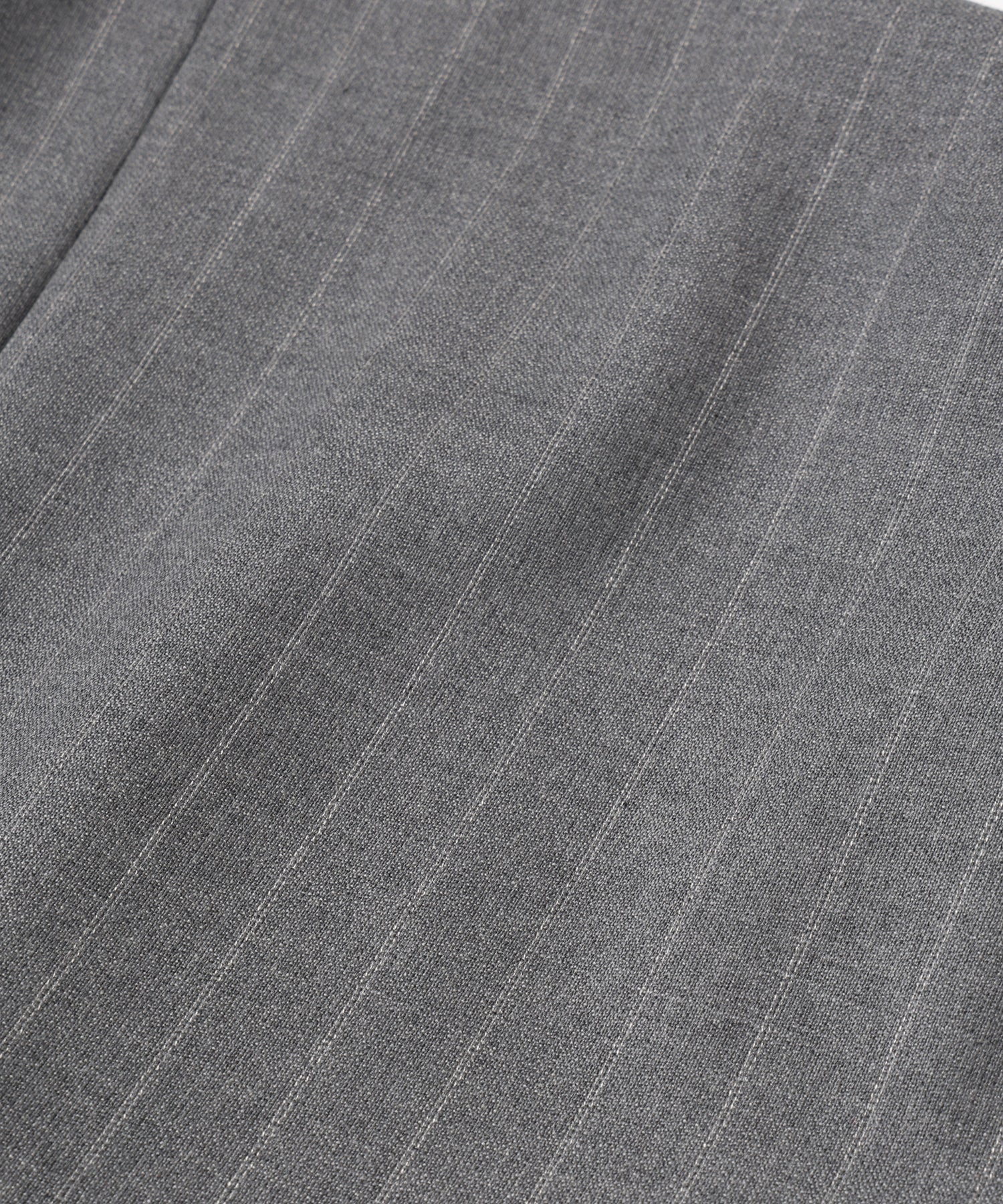 ウール主体のストライプ生地を使用することで、柔らかく落ち感のある上品な1着に仕上げました。