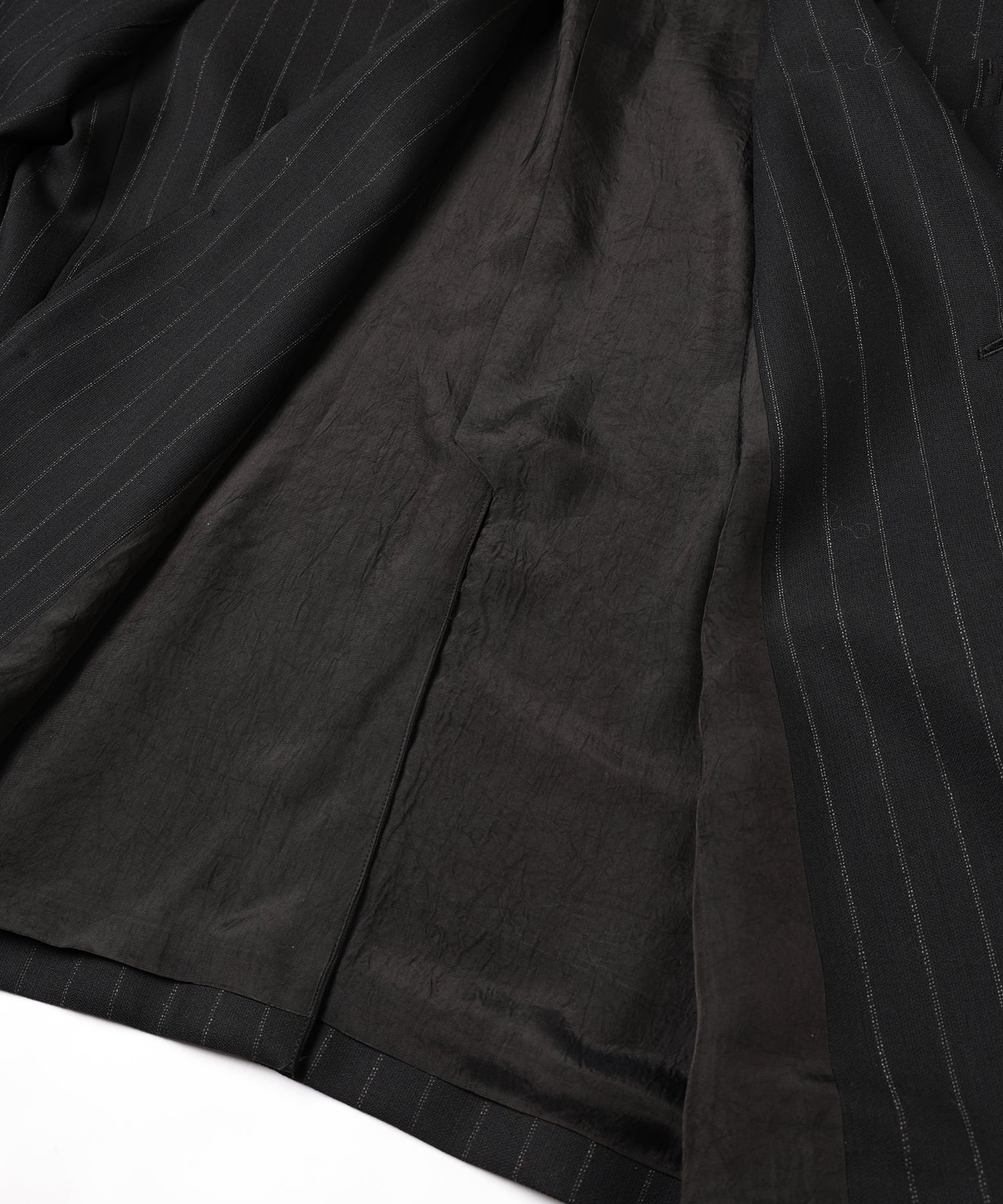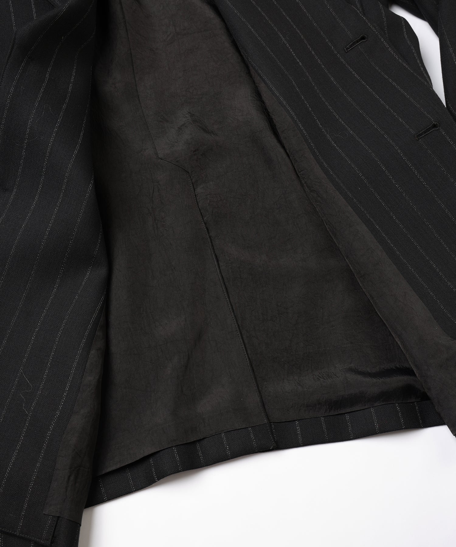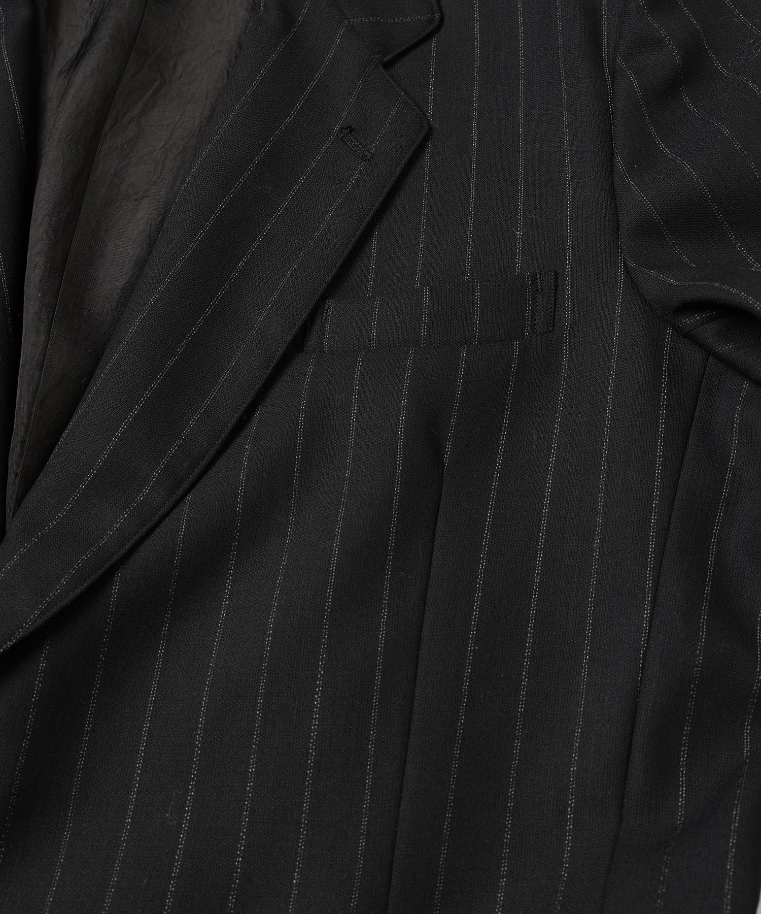ウール主体のストライプ生地を使用することで、柔らかく落ち感のある上品な1着に仕上げました。