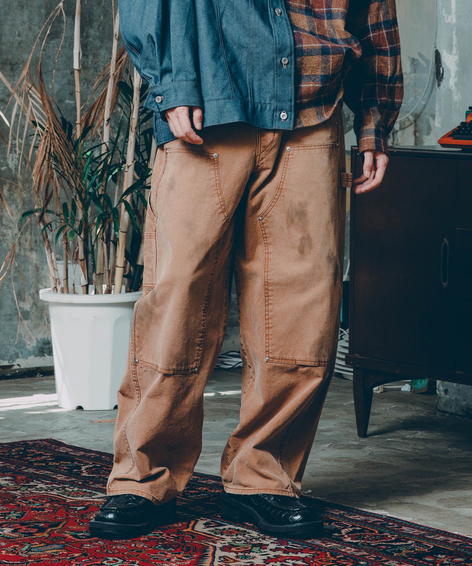 耐久性を高めるために当て布をあてがったことから広まったダブルニーパンツ。