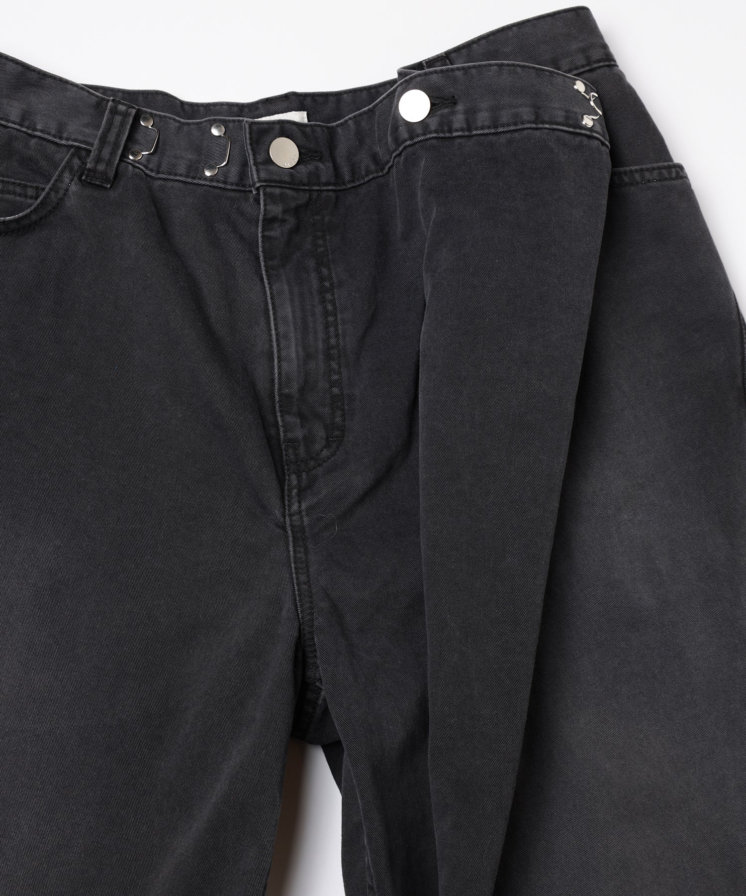 ウエスト部分にホックをつけることで、ウエストサイズの調節が可能、ウエストをつまむことで生じるシルエットの変化を楽しめる1着です。