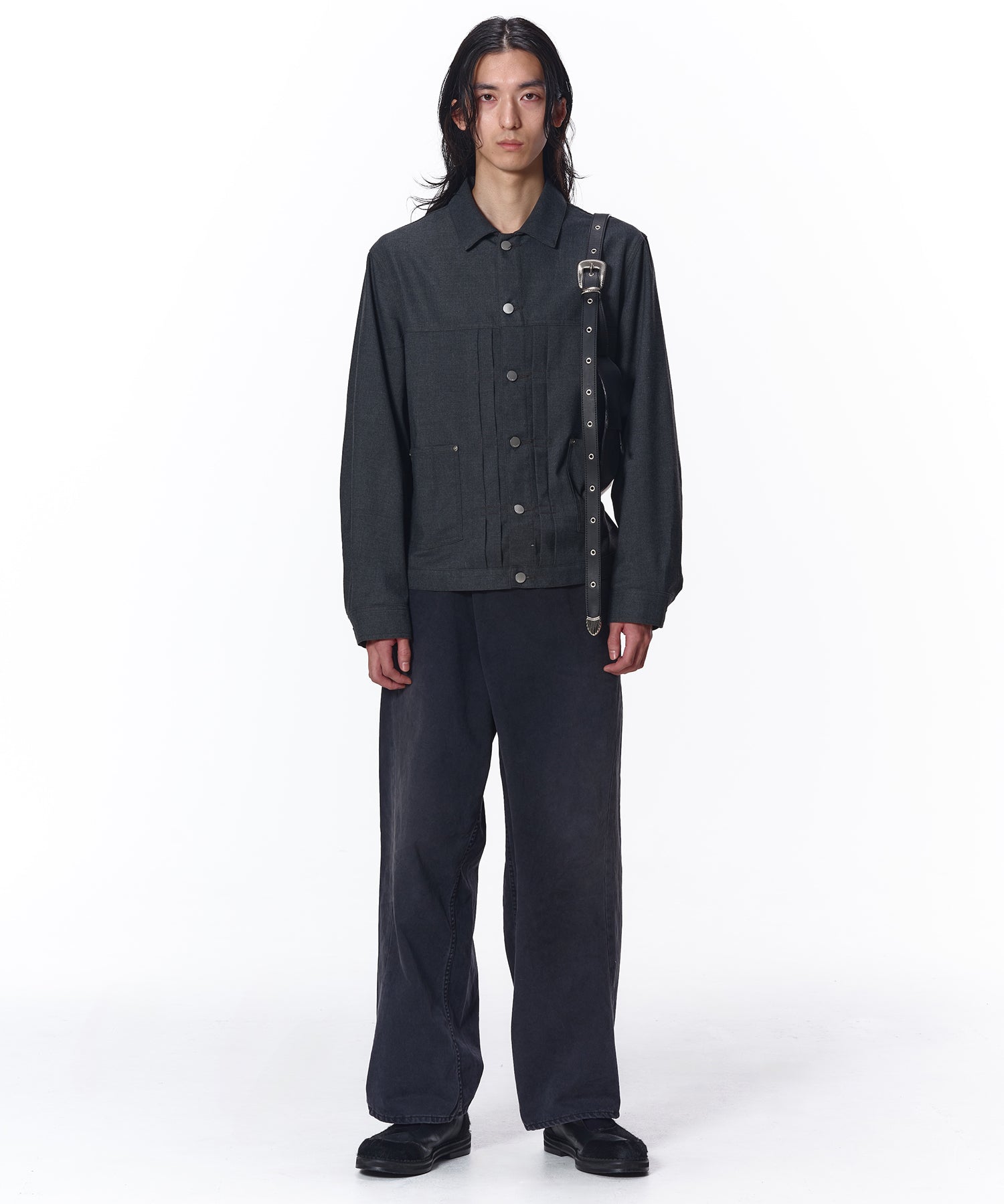 全体的にゆったりとしたシルエット、スタイリングのアクセントとなるアイテム。