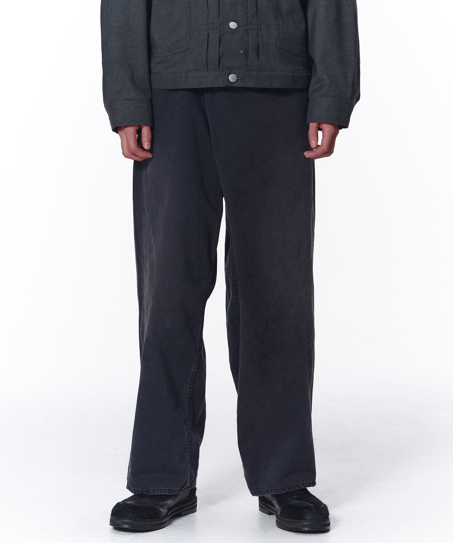 チノ生地に加工を施すことで、 生地にしなやかさを出し全体的に色落とすことで表情のある仕上げました。