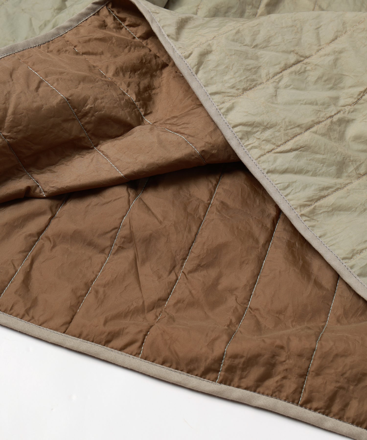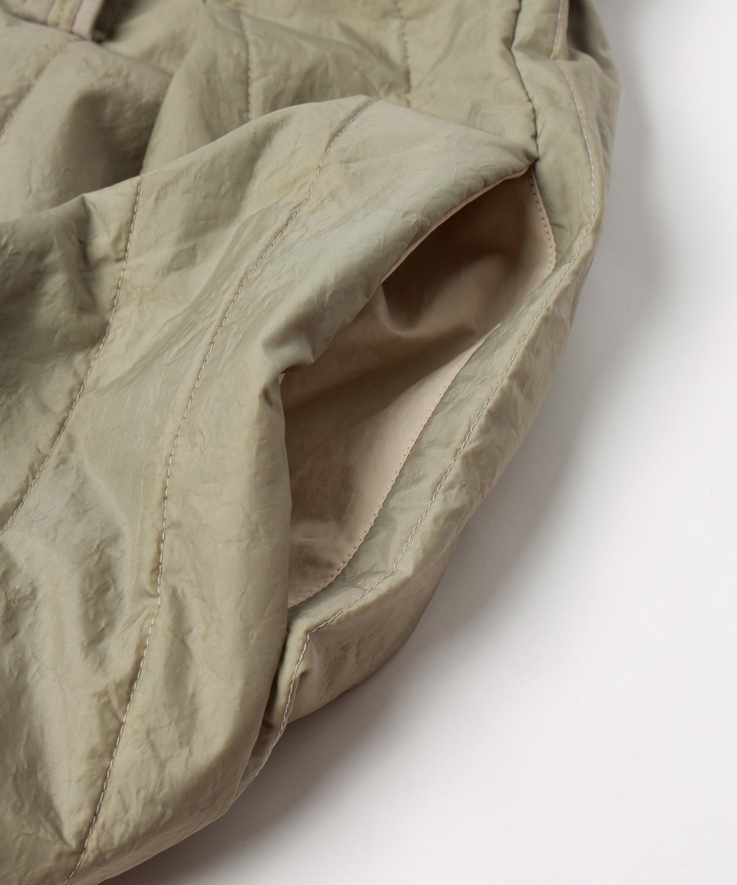 キルティング生地は表裏色の違うナイロン生地を使っていてステッチ色はスモーキーな水色。