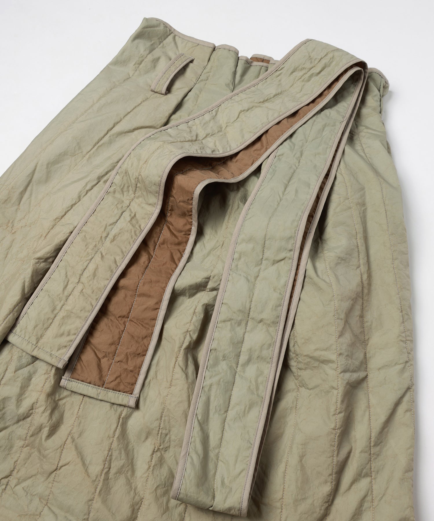 柔らかく染め上げる手法で染められたオリジナルのキルティング生地のスカート。