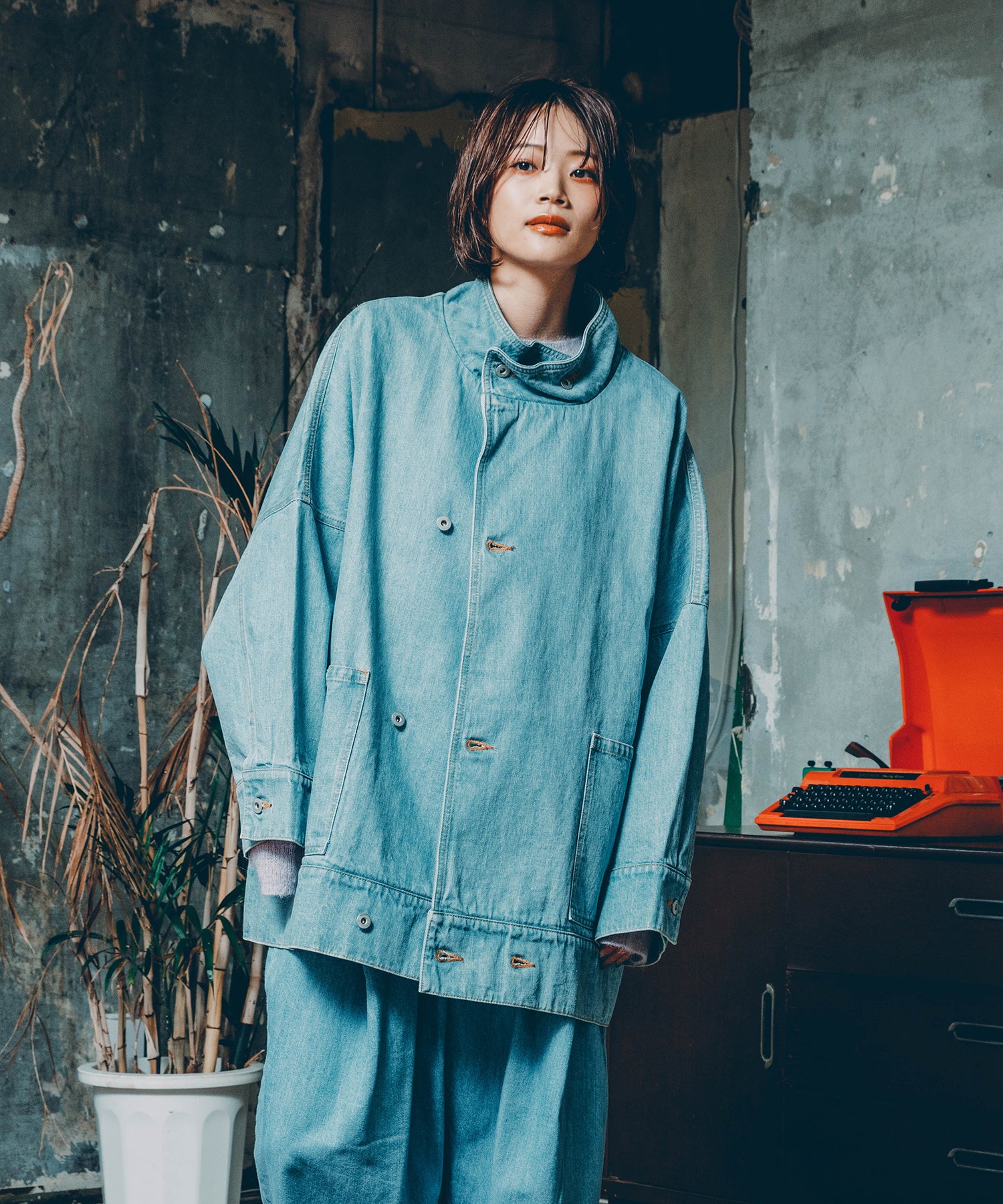 デニムスタンドカラーコート