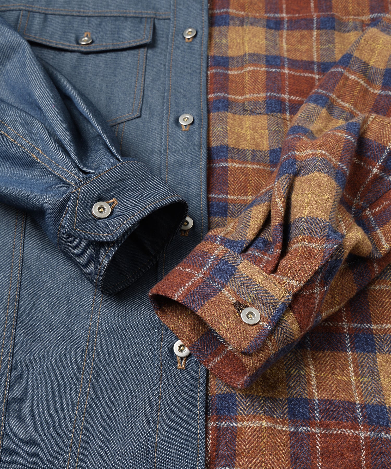 異なる素材感、カラーリング、ディテールを一枚に閉じ込めたデザインアイテム。