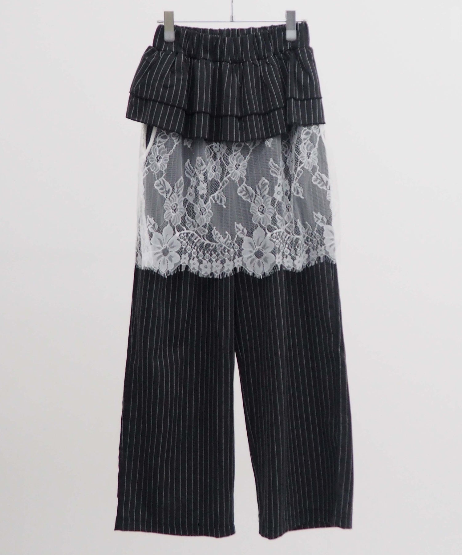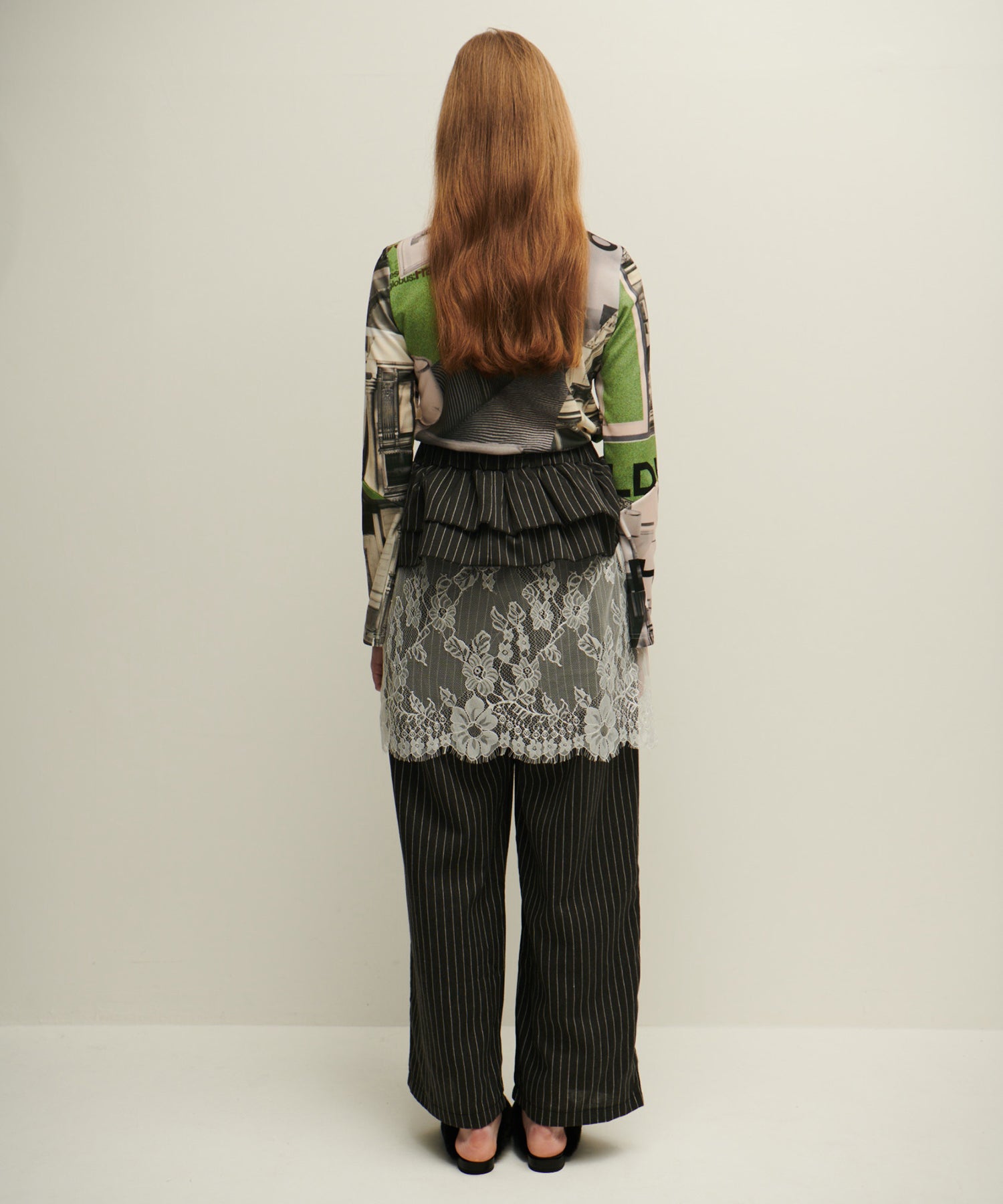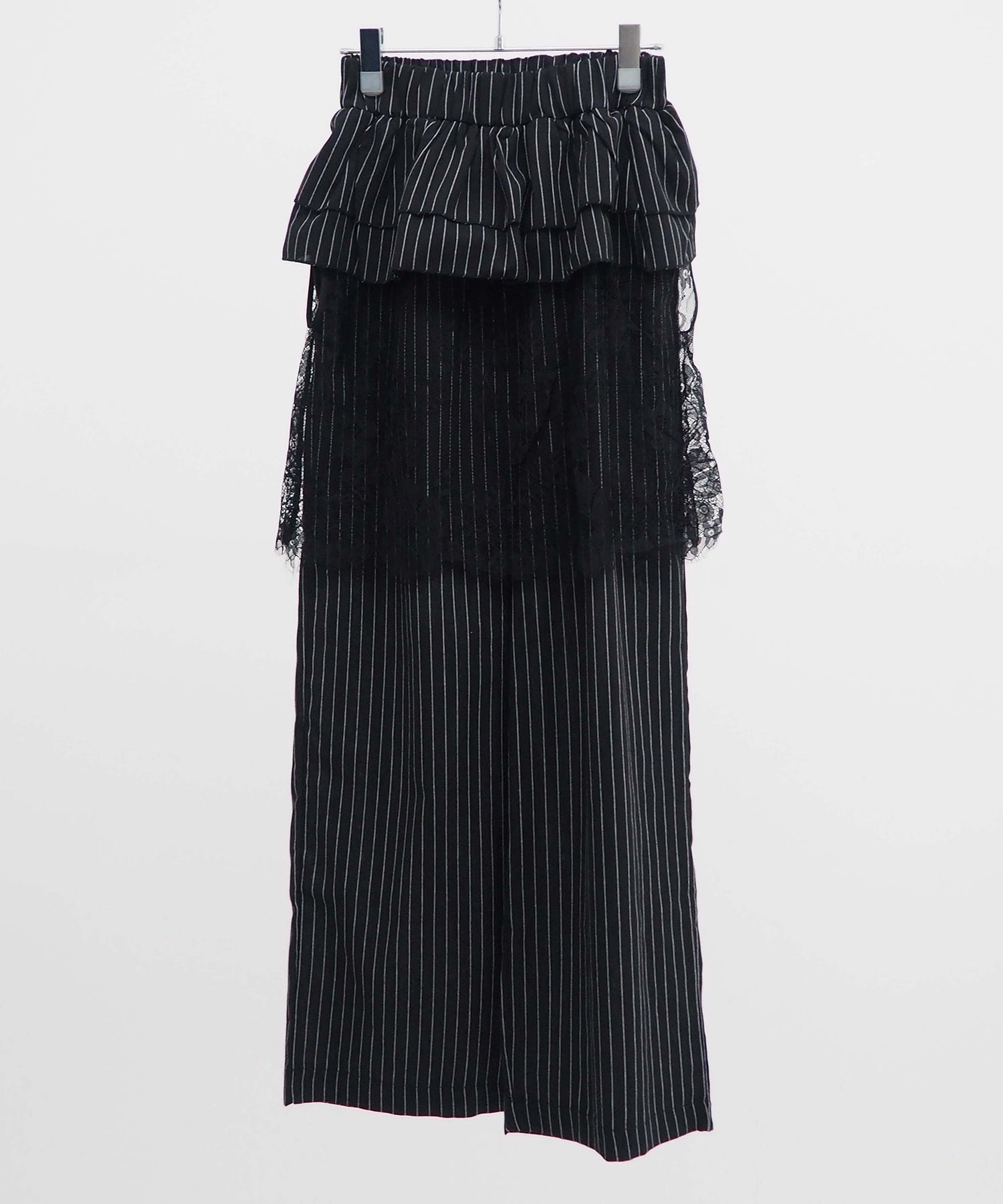 ストライプ生地を使用したフリル装飾、透け感のあるシアー素材を使用したスカート部分で構成されています。