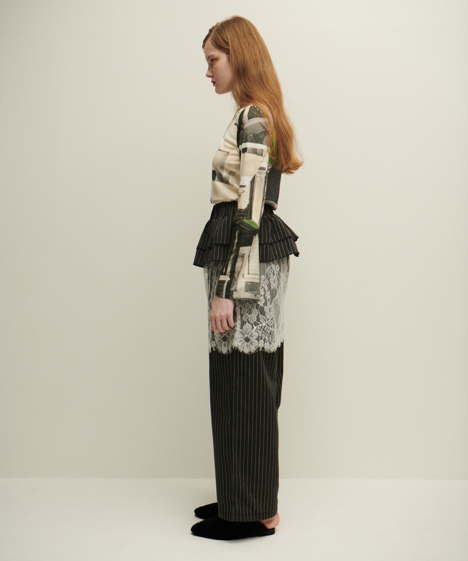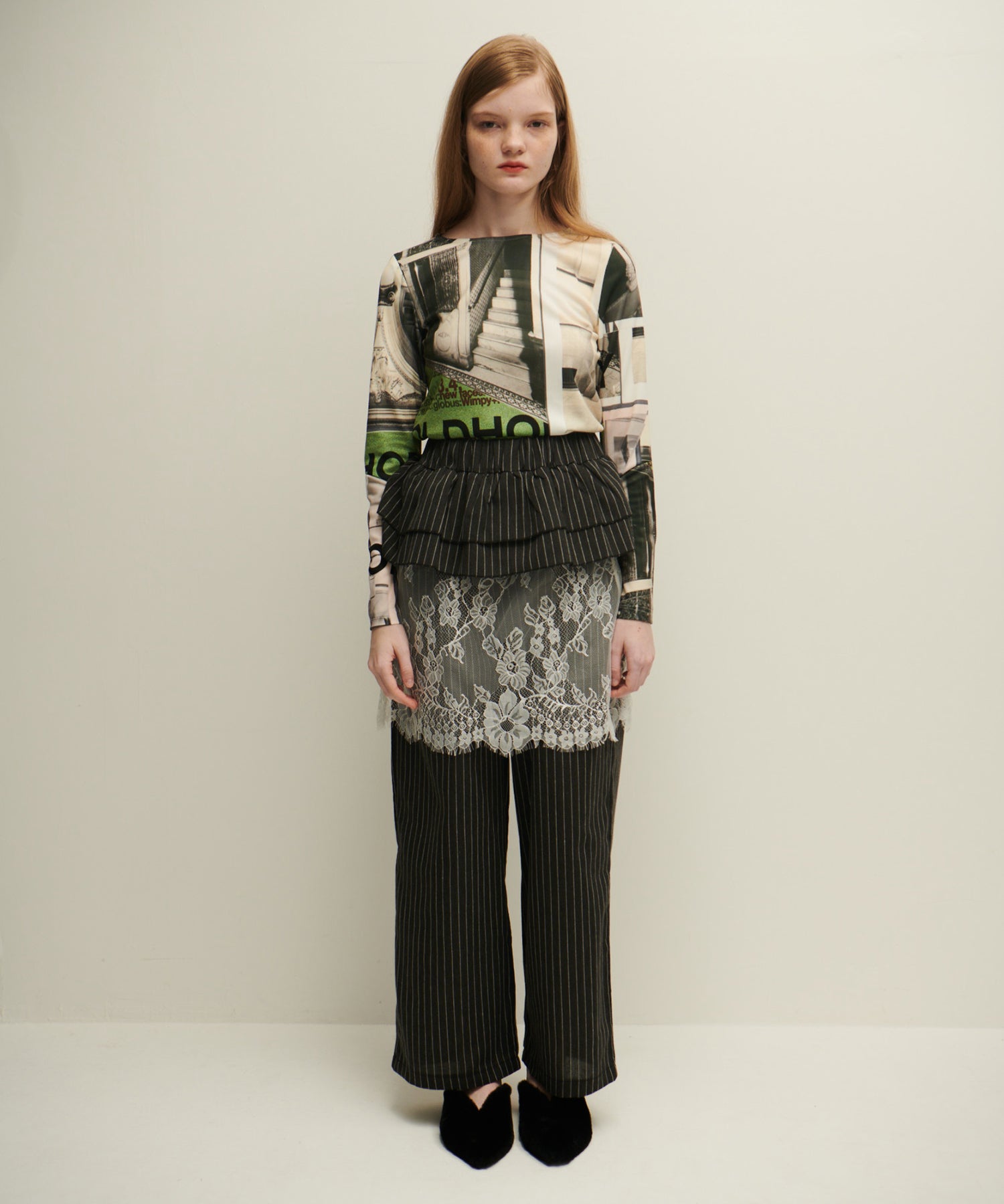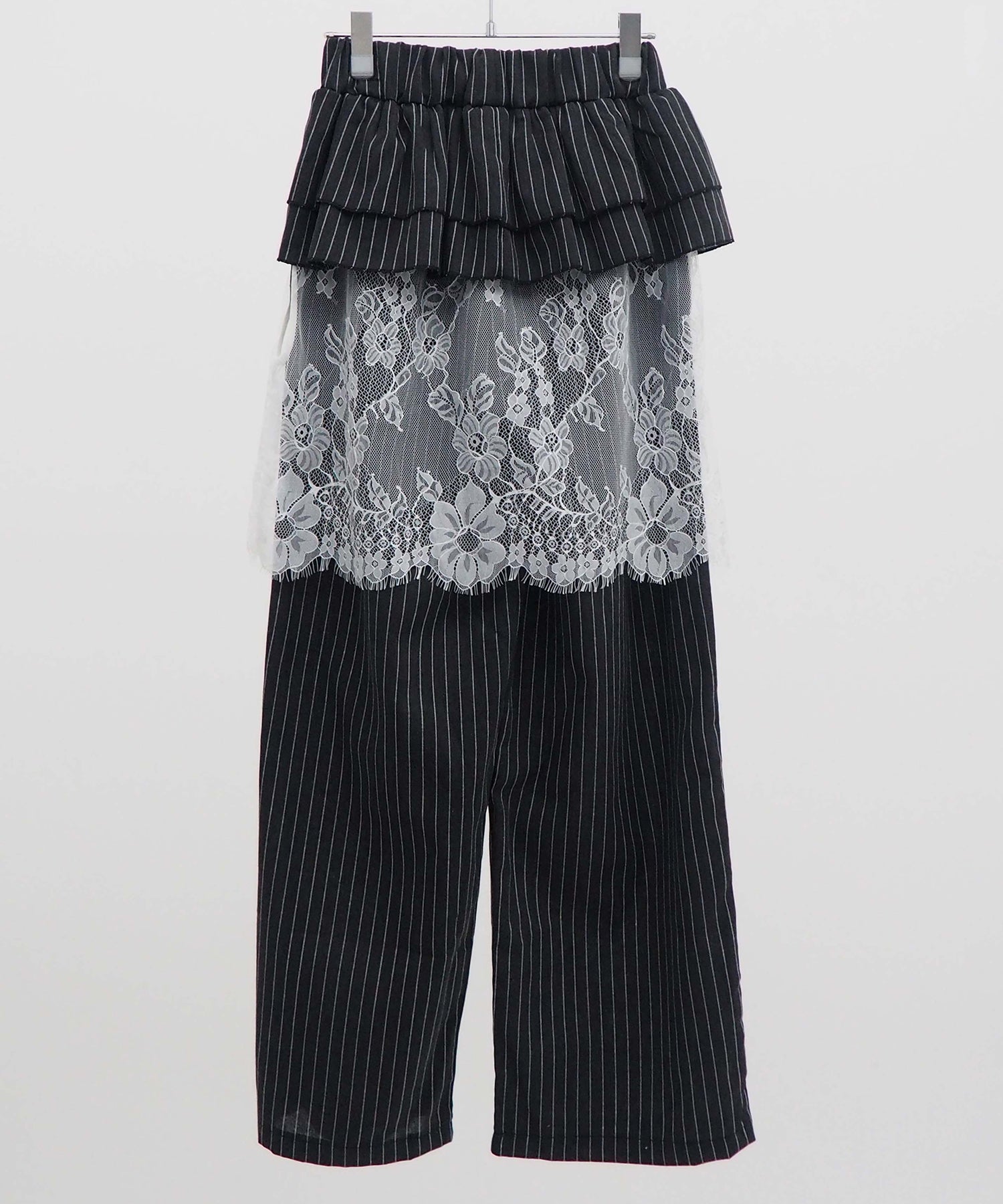 ストライプ生地を使用したフリル装飾、透け感のあるシアー素材を使用したスカート部分で構成されています。