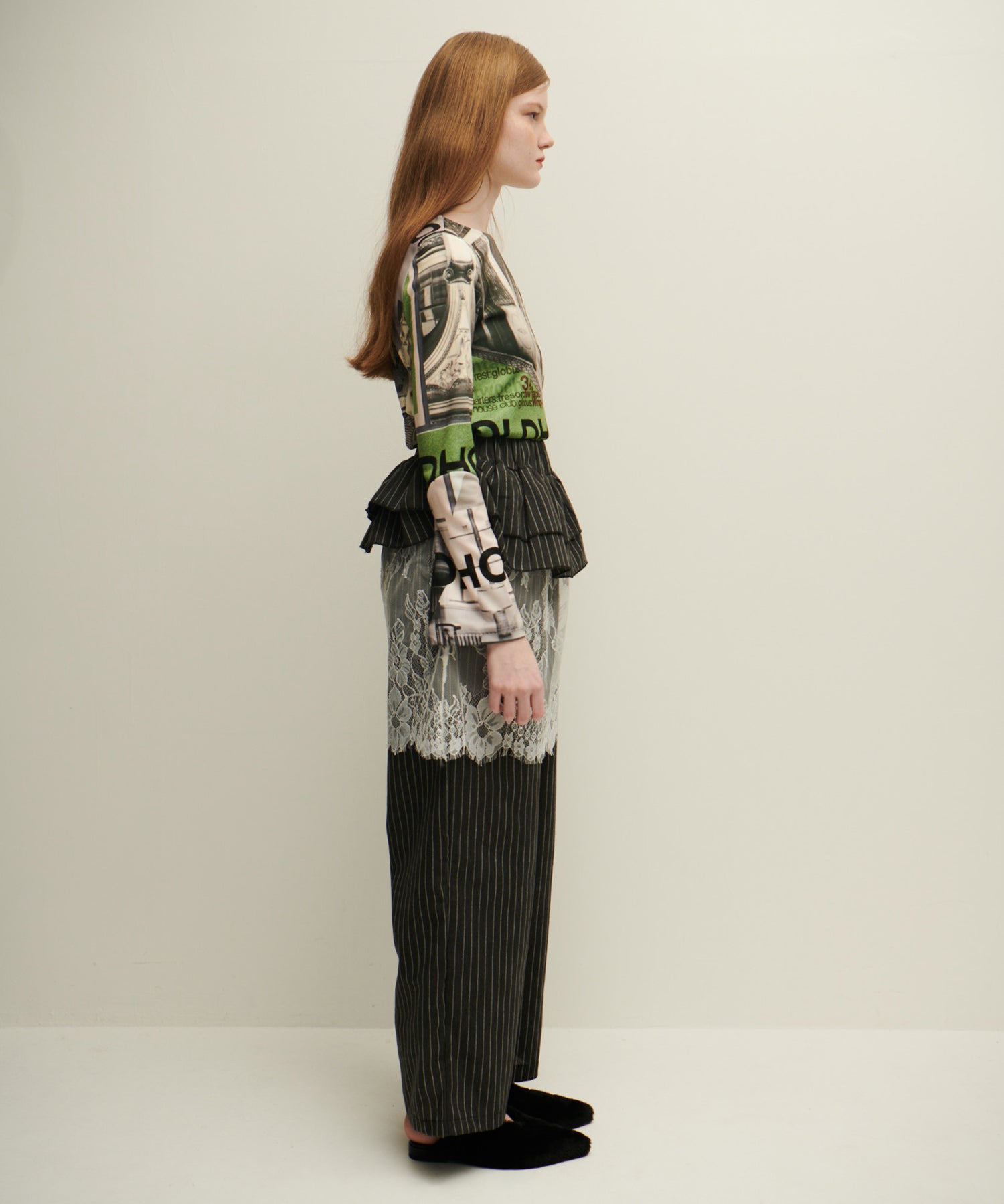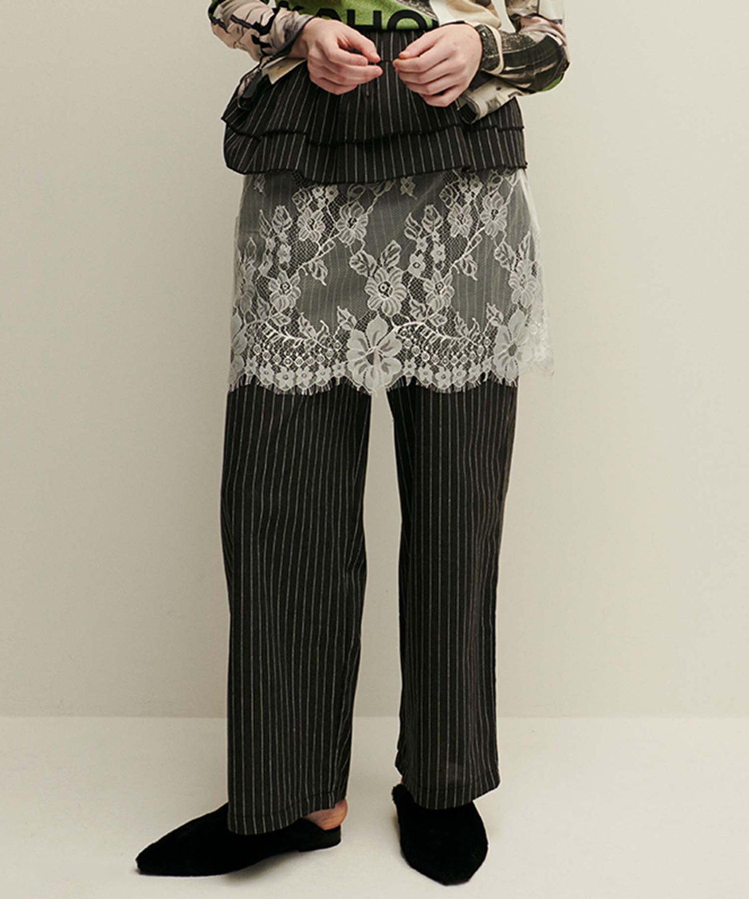 上品な印象のパンツに、女性らしい可憐なディテールを閉じ込めました。