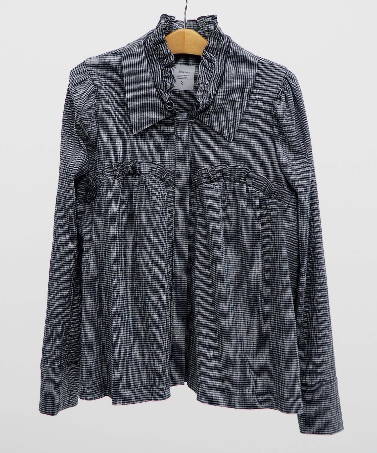 ベーシック襟元にフリル装飾を施し、レイヤードされたディテールが特徴です。