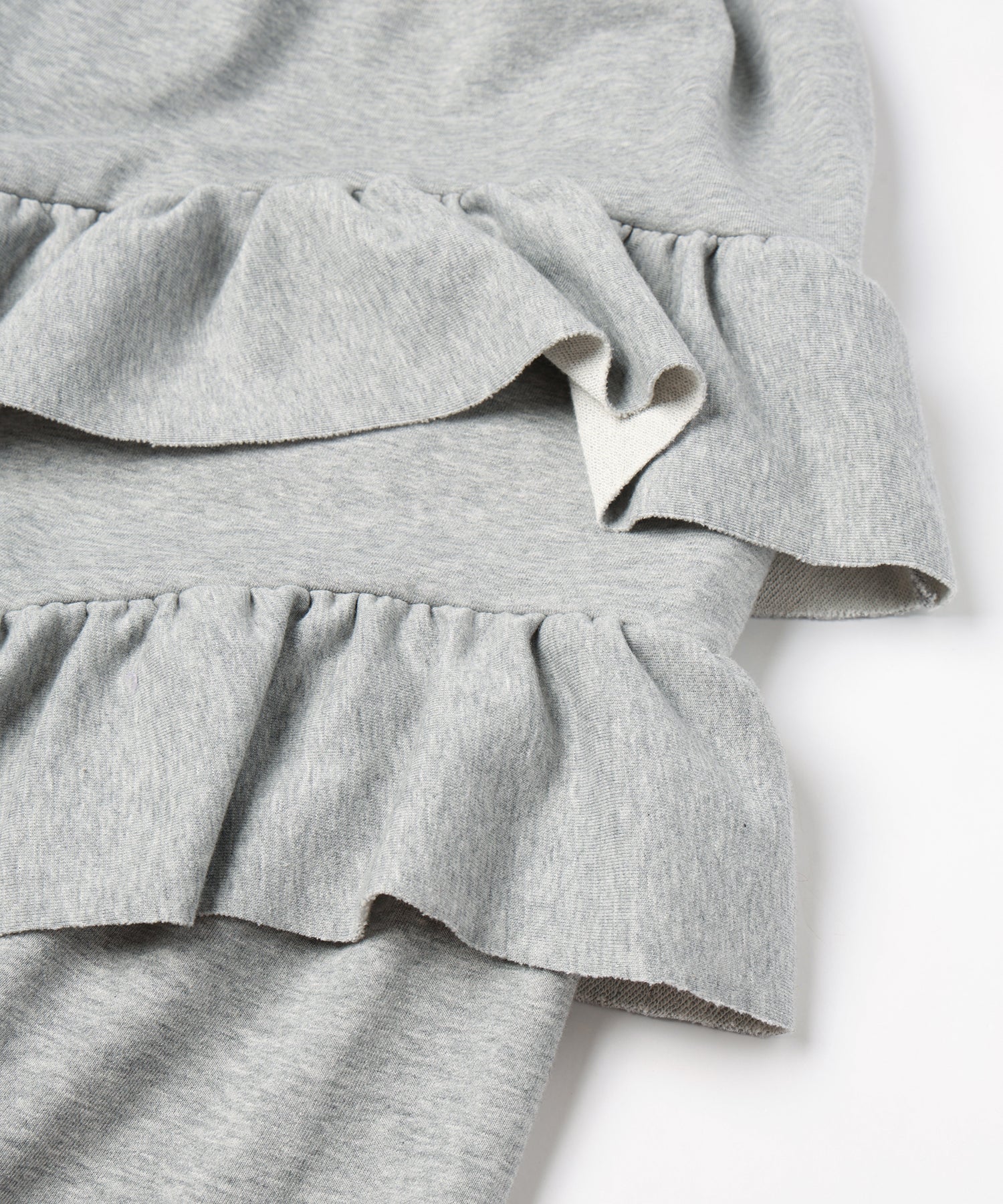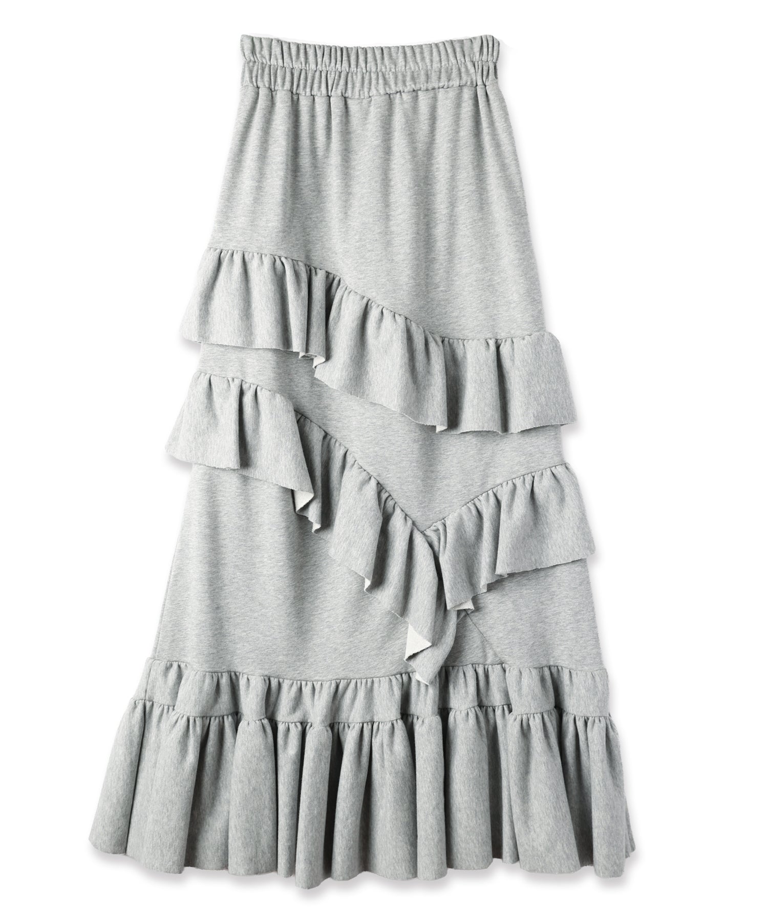 フリル装飾を重ねたボリューム感のあるマキシ丈のスカート。
