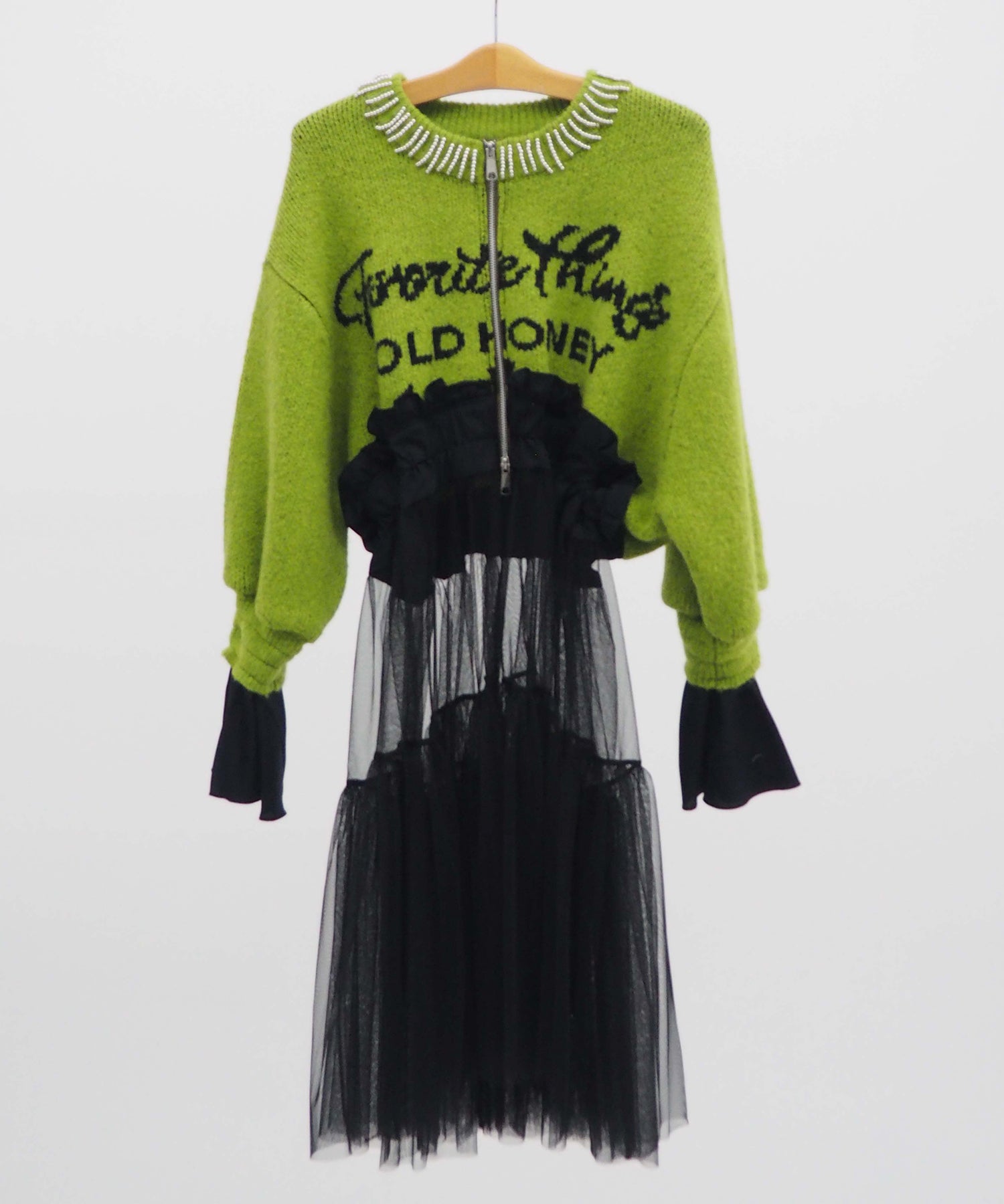 素材:アクリル78%、PA10%、ウール10%、ポリウレタン2%、コットン100%、チュール:ポリエステル100%