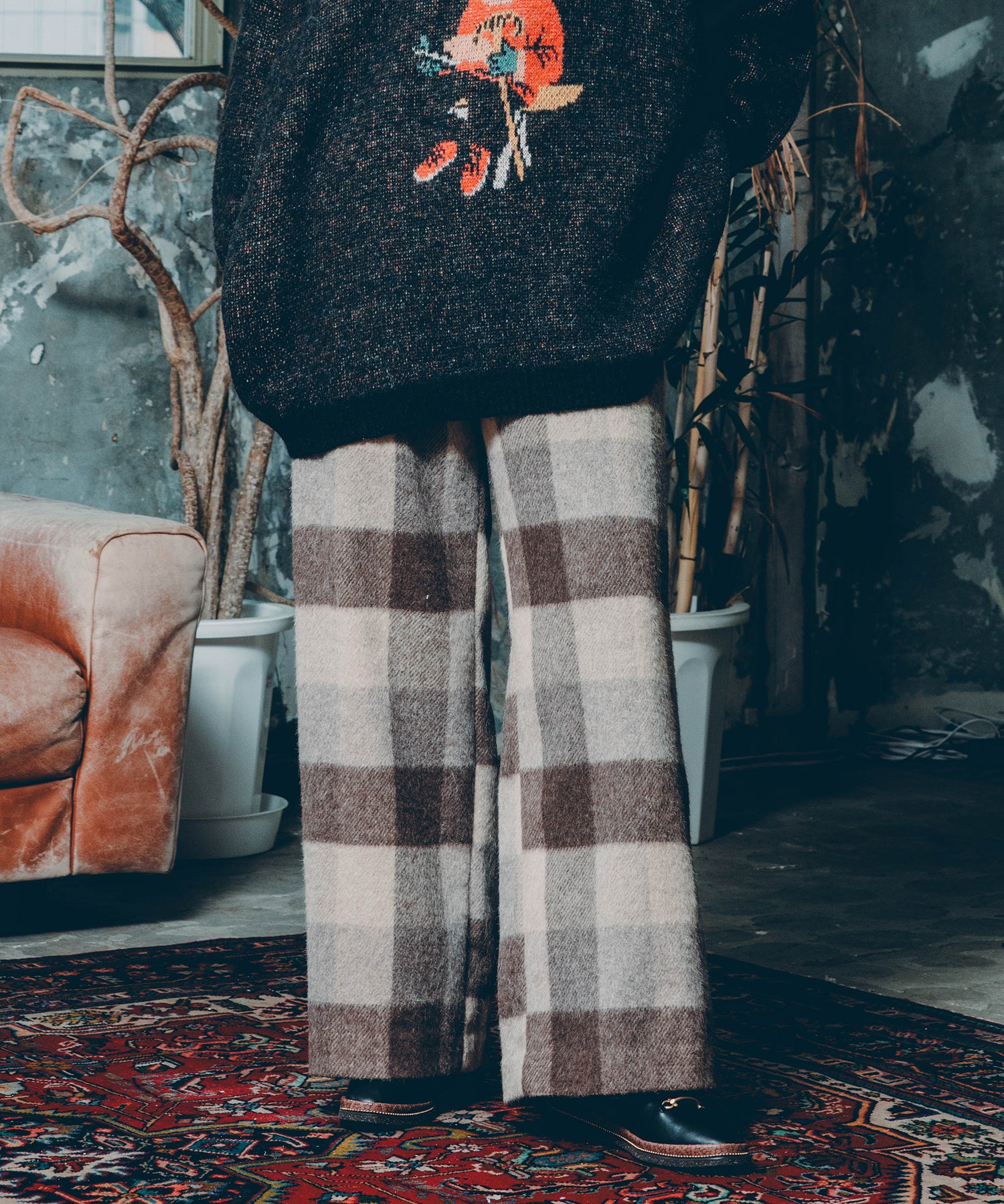 ジャガードのブロックチェック柄はスタイリングを華やかにしてくれます。