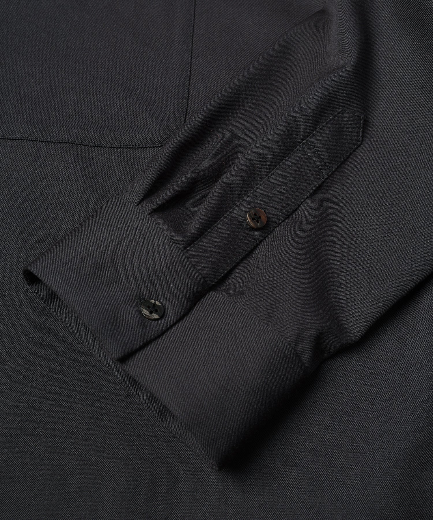 フロントのボタンの一部は比翼仕立てにし、すっきりとした印象を引き上げています。