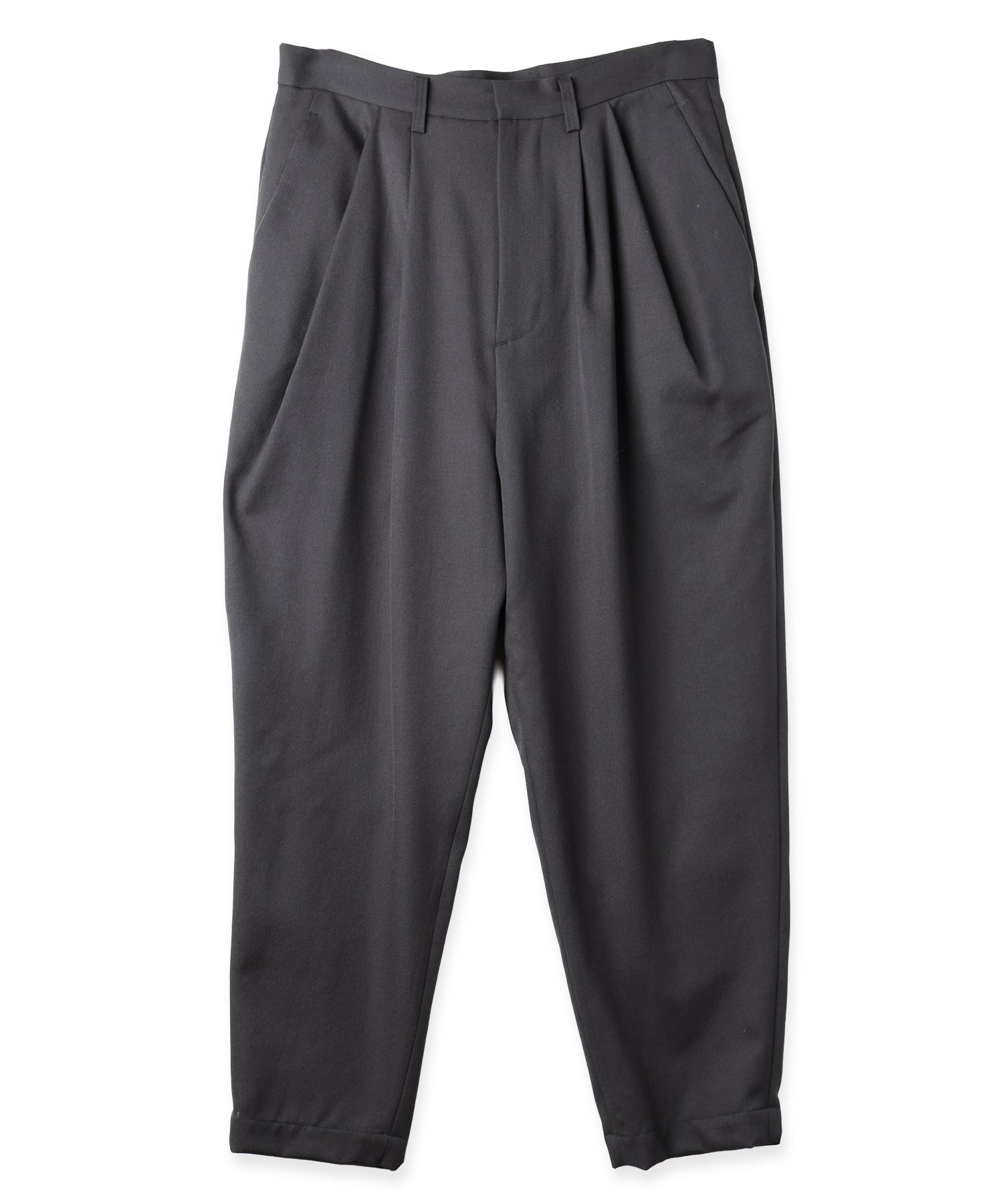 定番人気のオーバータックパンツ。腰回りにいれたタックでボリュームをもたせ、