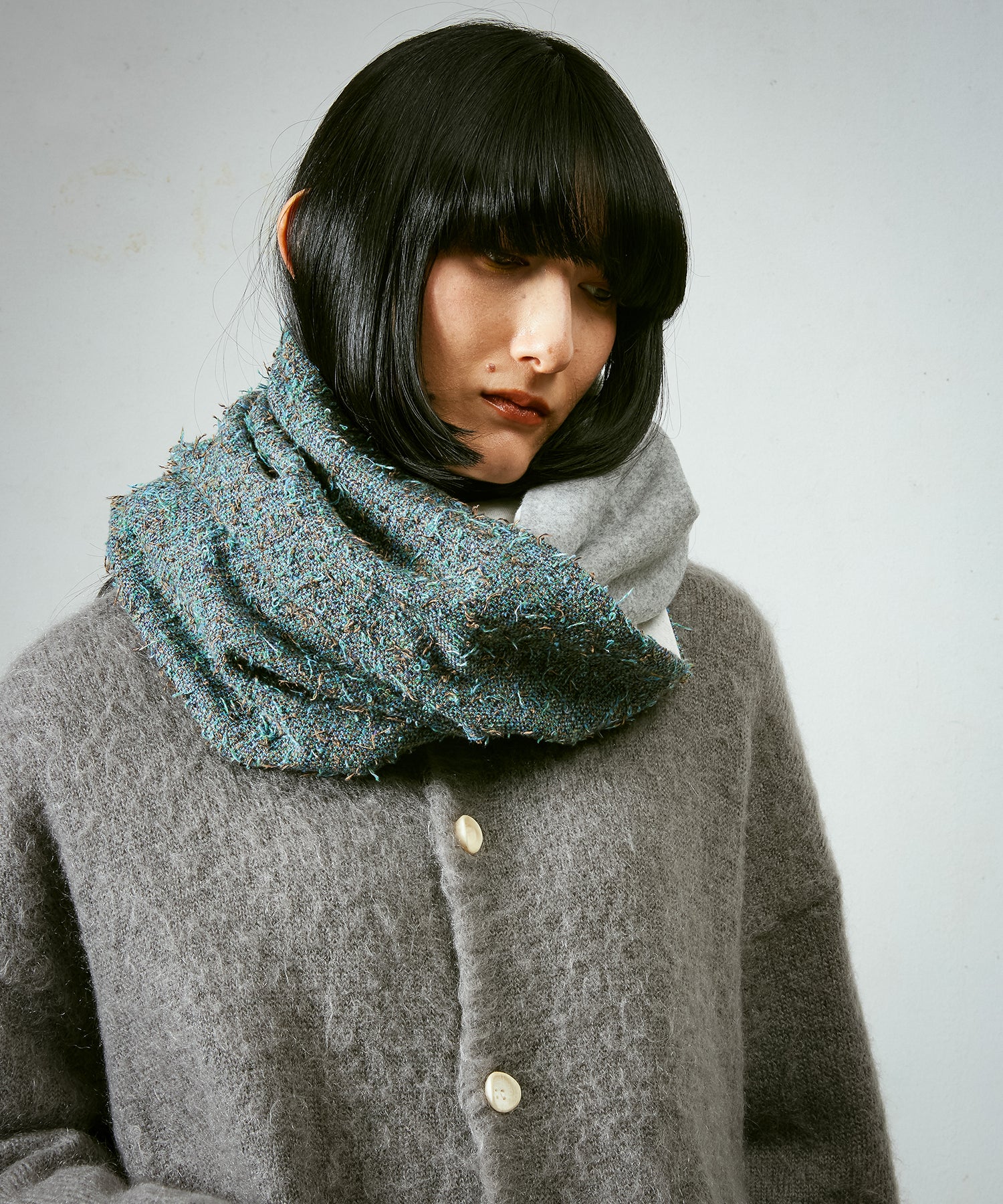 今季のオリジナルファブリックを贅沢に閉じ込めたミックススヌード。
