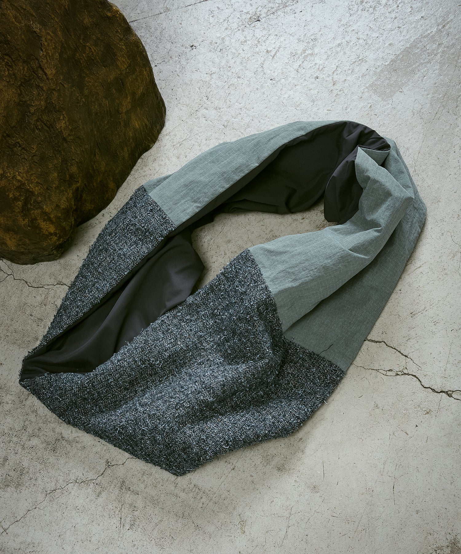 今季のオリジナルファブリックを贅沢に閉じ込めたミックススヌード。
