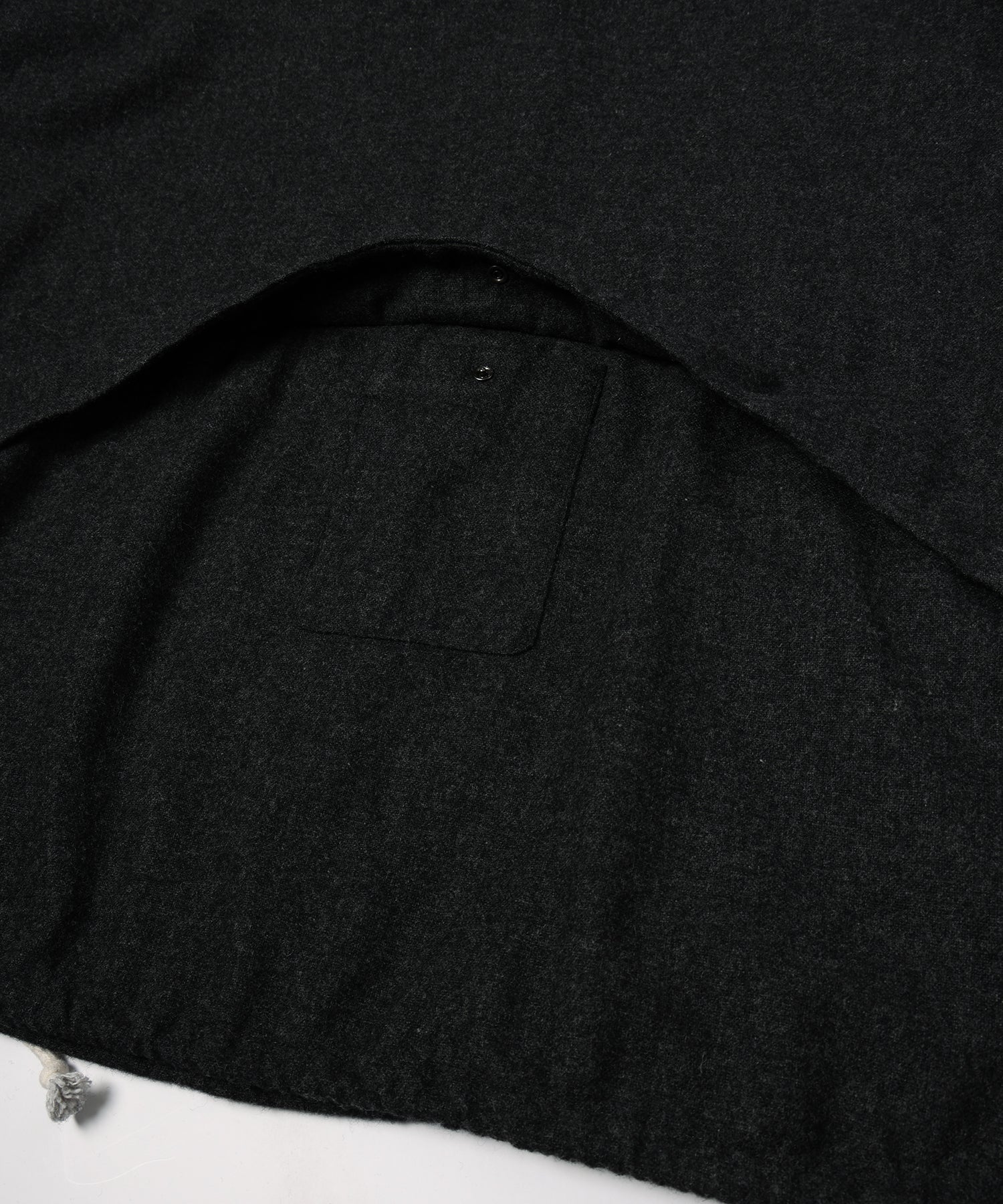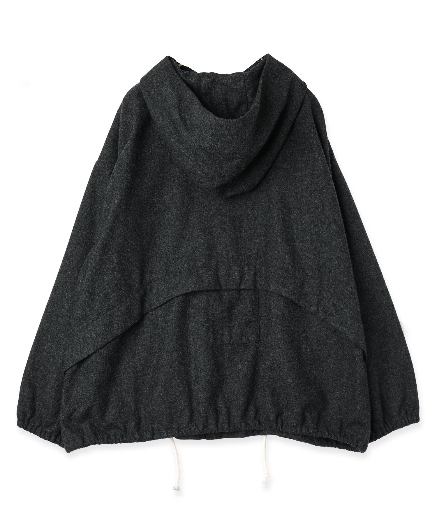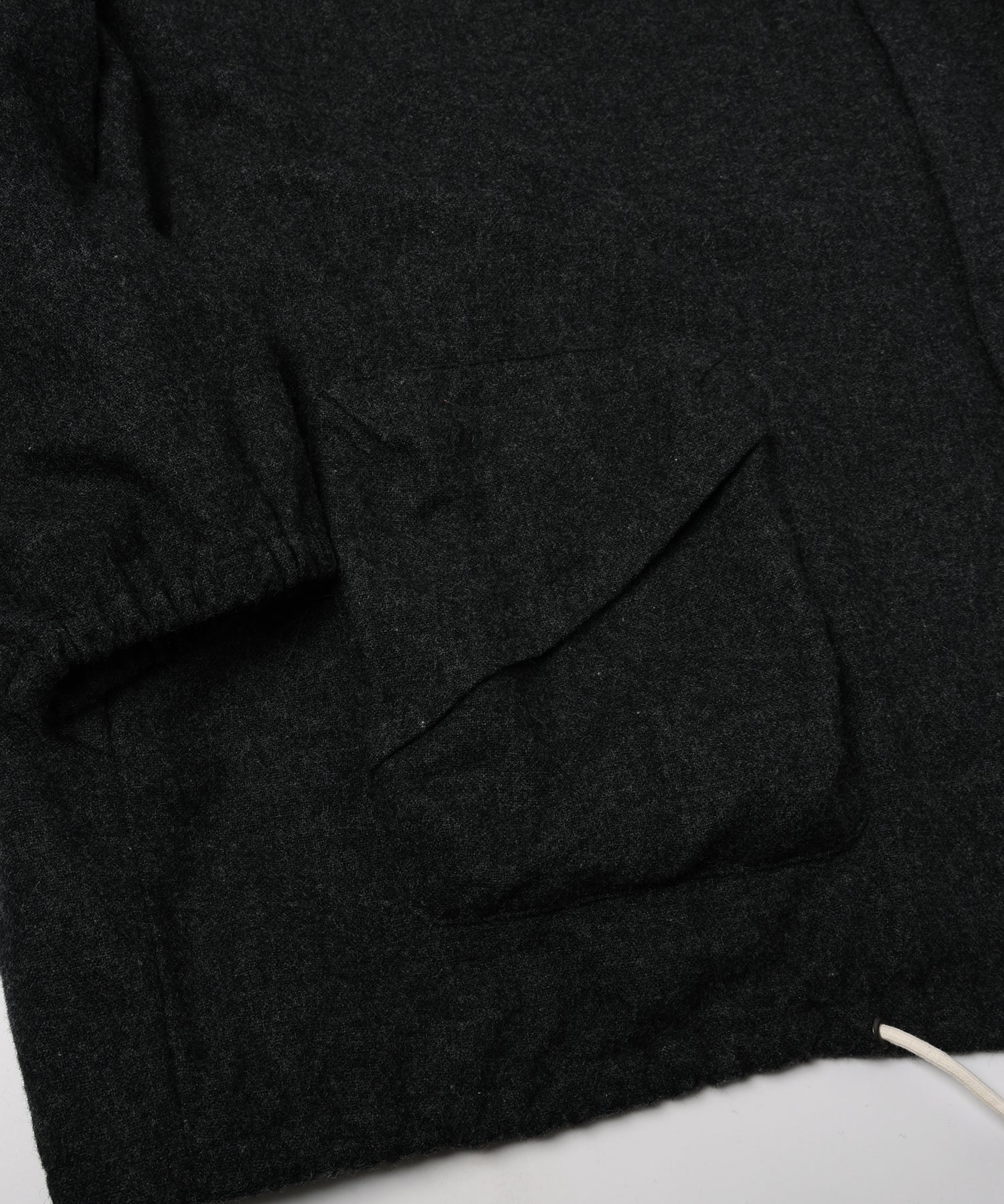 縮絨ウール素材を使用しました。やわらかさと肌触りとともに、加工により糸が膨らんでいることで編み目が詰まり防寒性が引き上がっています。
