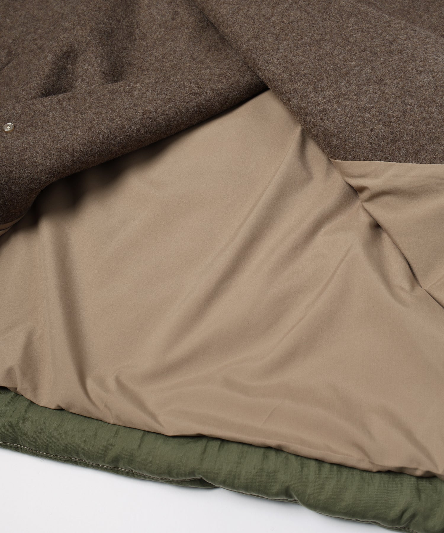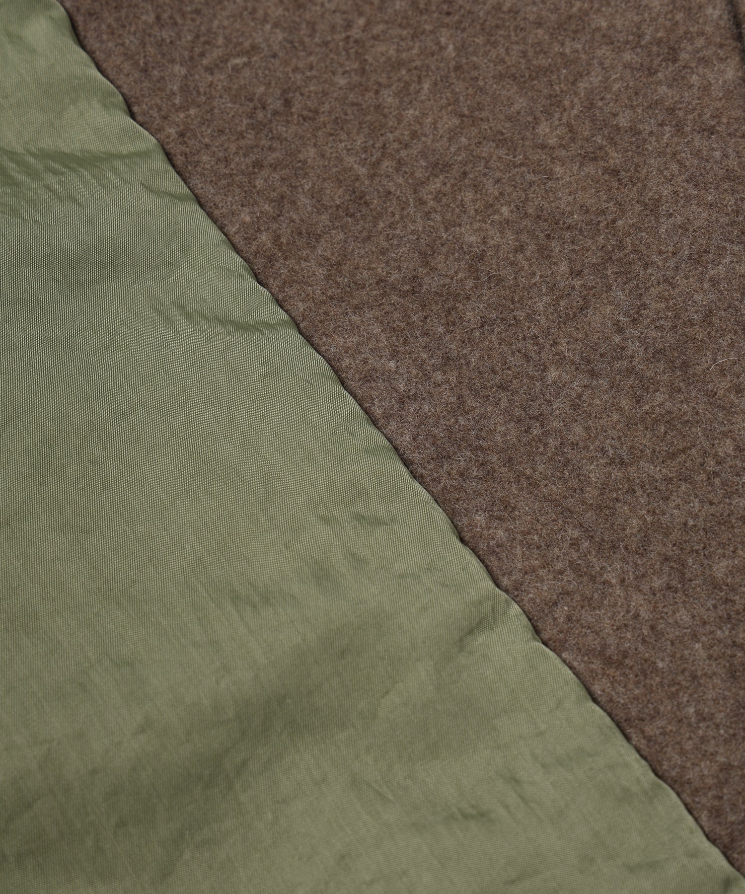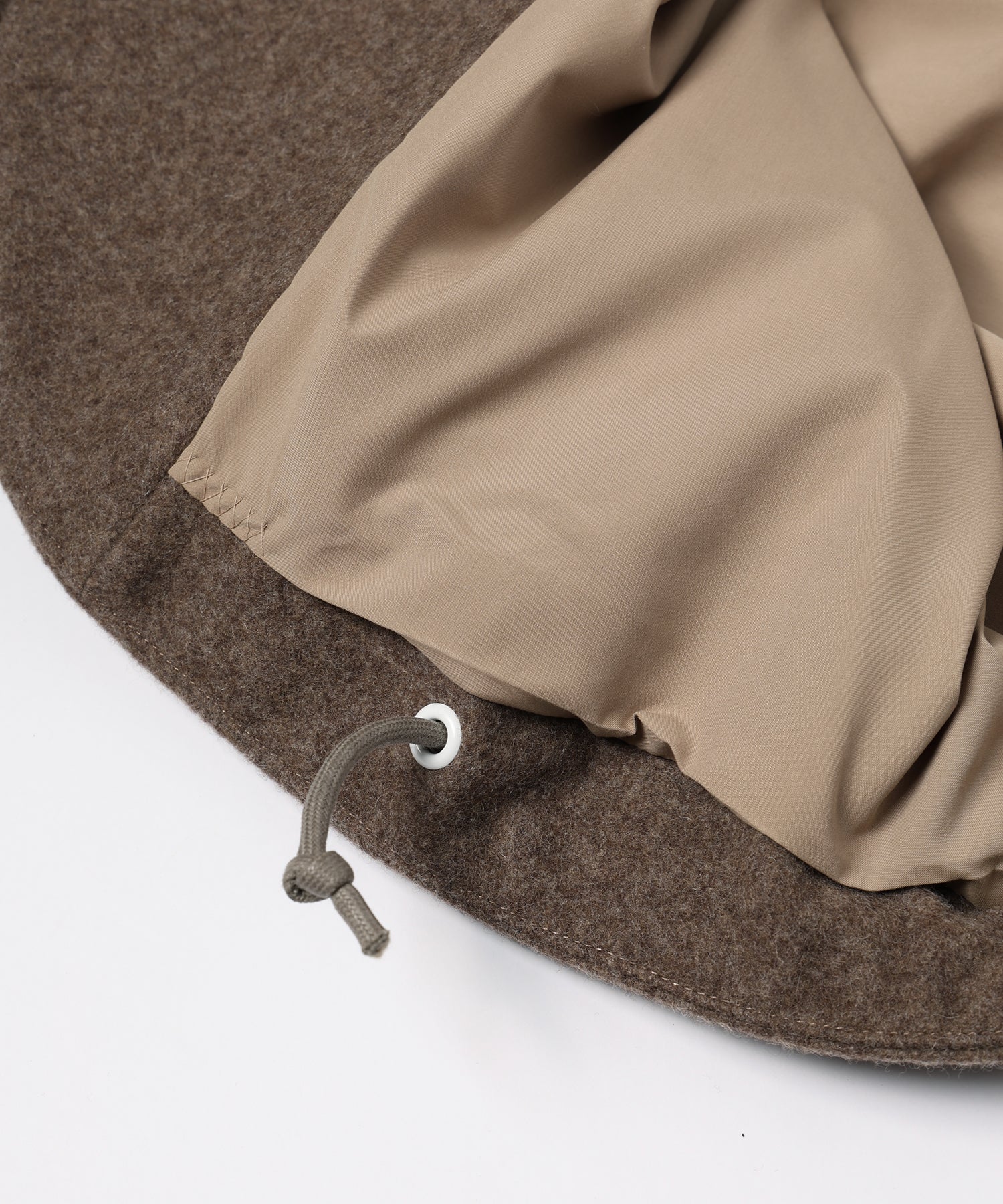フロントにはフェルトのように柔らかく、滑らかな肌ざわり、保温性、撥水性に優れているメルトン生地を使用。