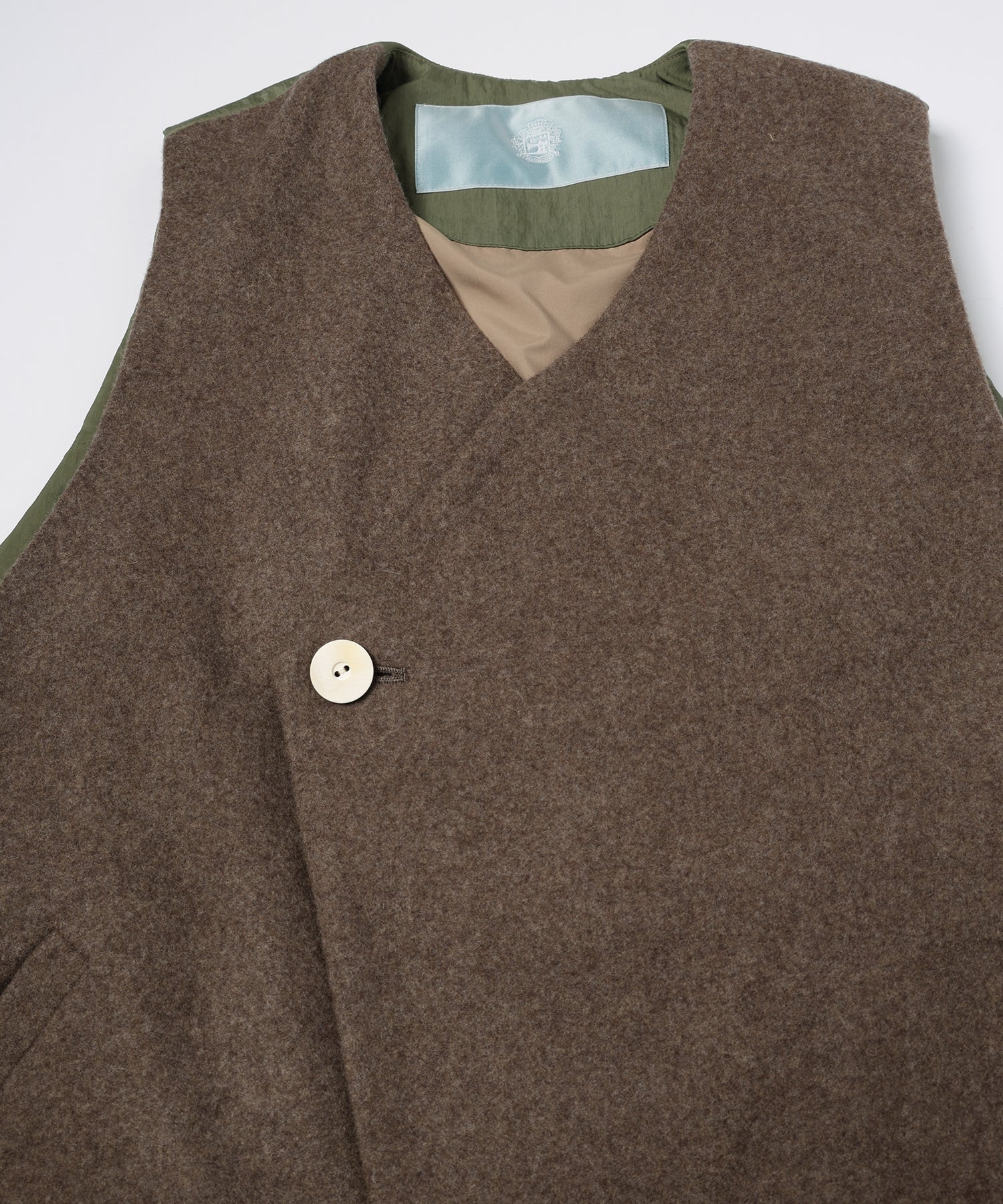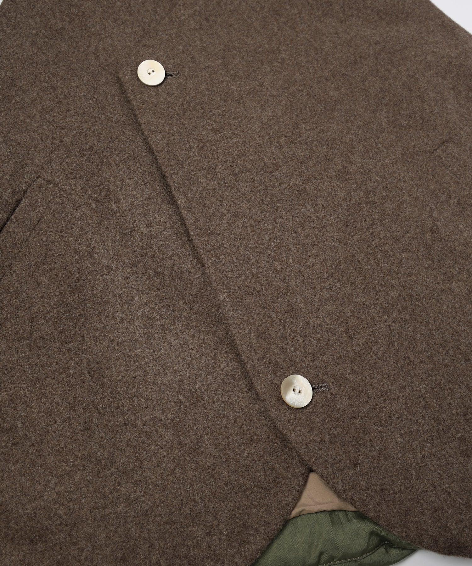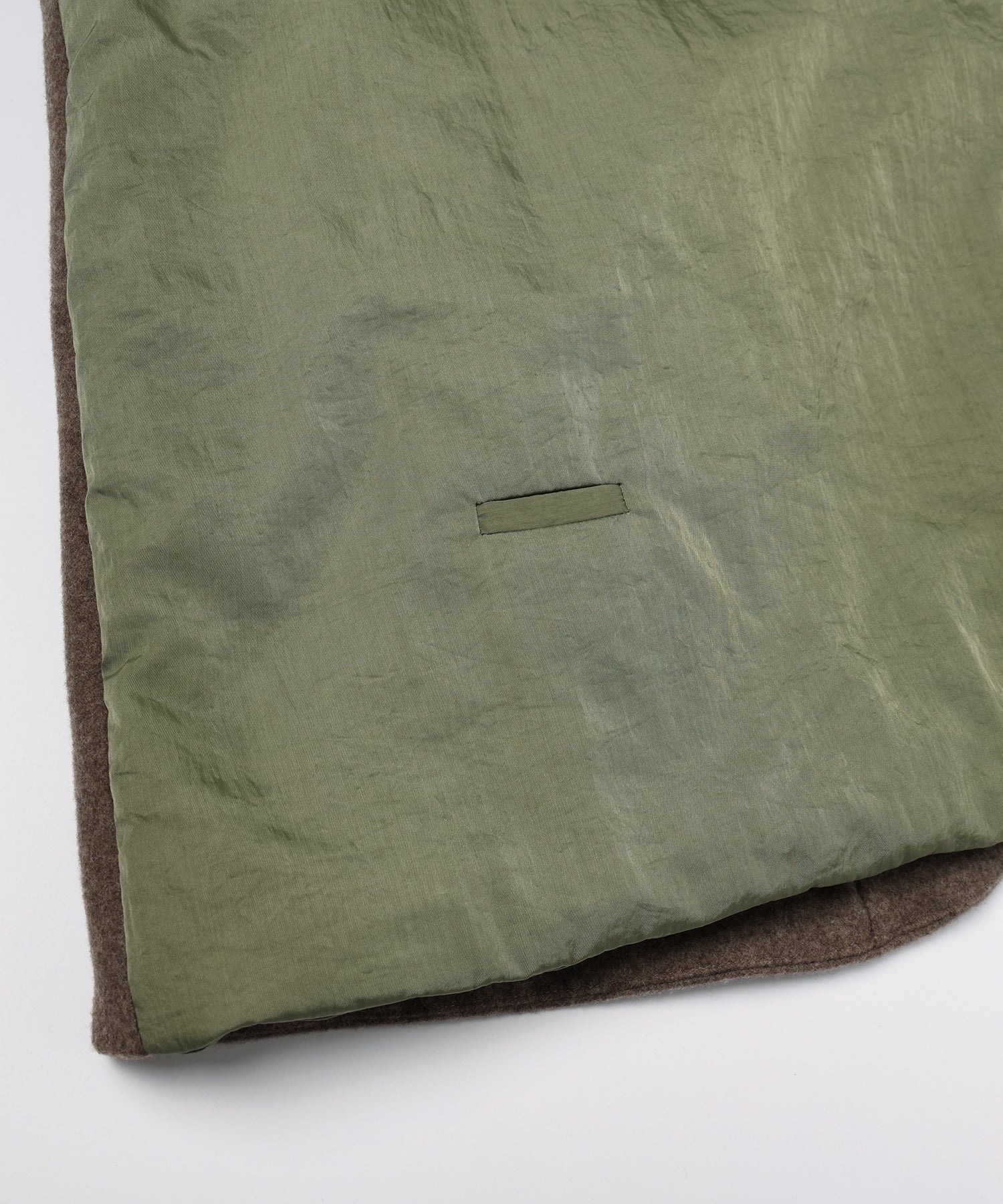フロントにはフェルトのように柔らかく、滑らかな肌ざわり、保温性、撥水性に優れているメルトン生地を使用。