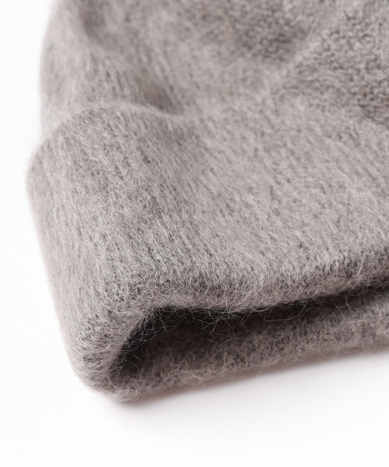 やわらかい肌ざわりと絹のような光沢が特徴のモヘア素材を使用したキャップ。