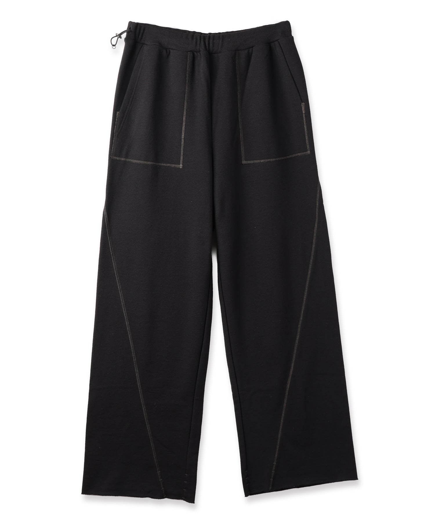 ヒップから裾に向かってストンと落ちたワイドシルエットのバギーパンツ。ポケット周り、裾元のシームデザインがパンツの個性を引き上げました。