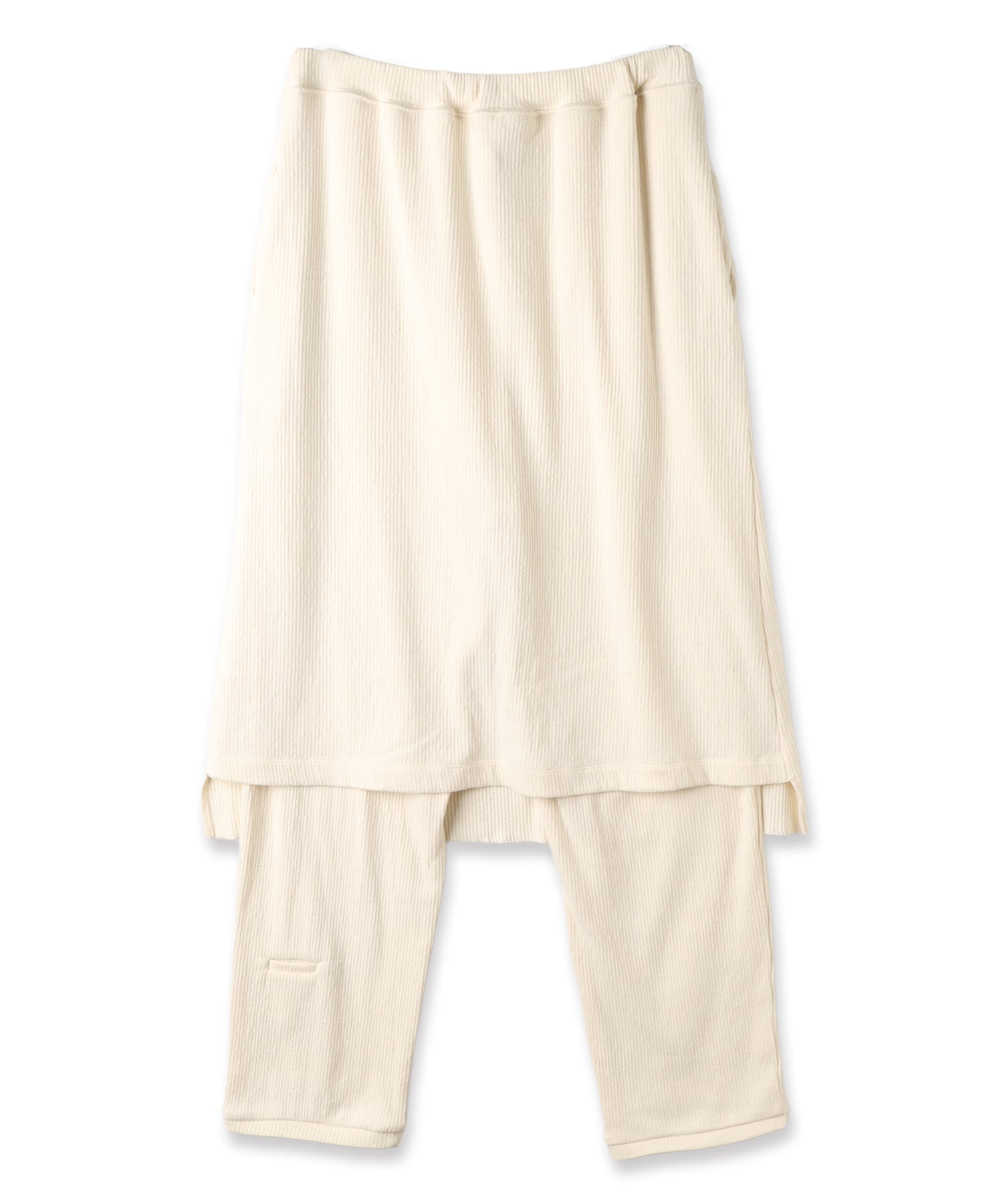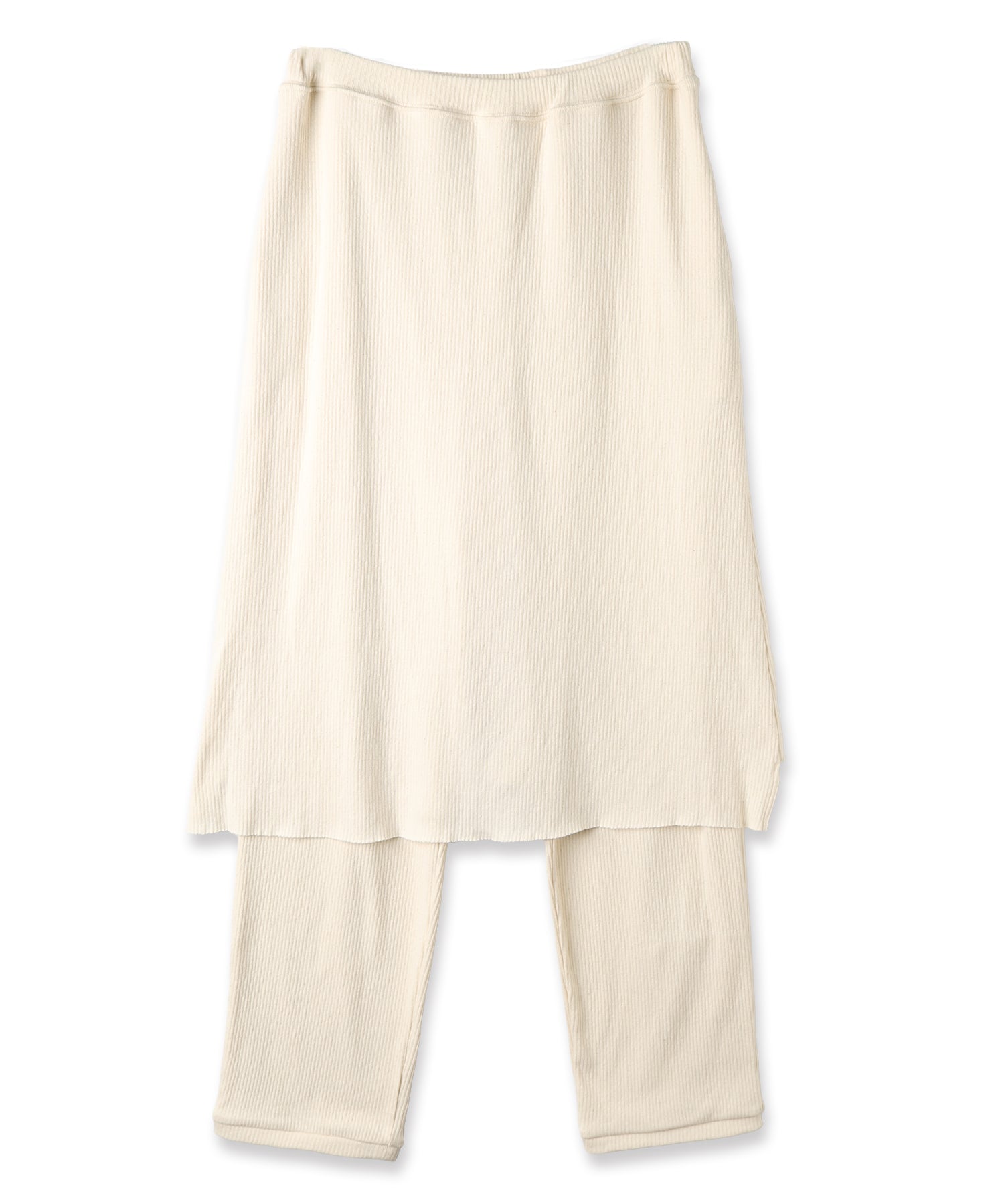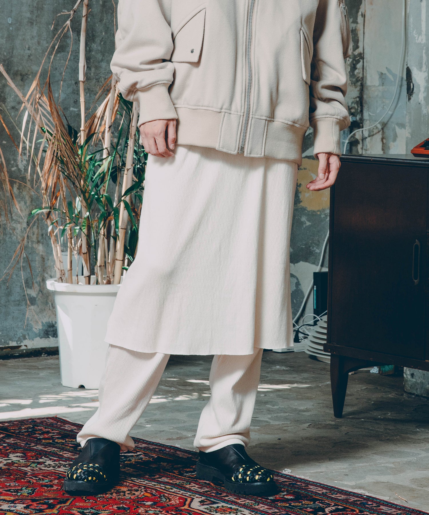 ベーシックなストレートシルエットのパンツにスカートをレイヤードしました。