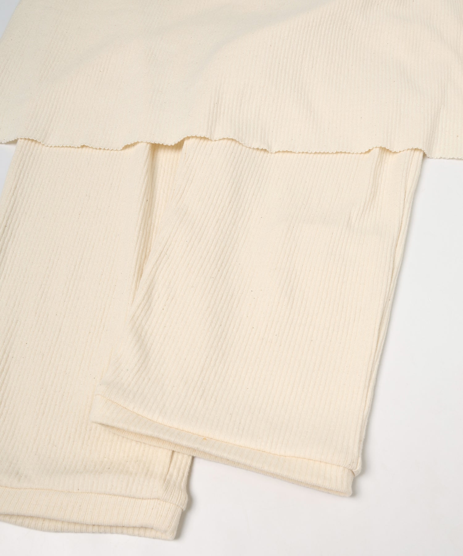 編み針から規則的に針を抜いて編みあげる「針抜き」を行うことによって、ストライプ状の生地に仕上げました。