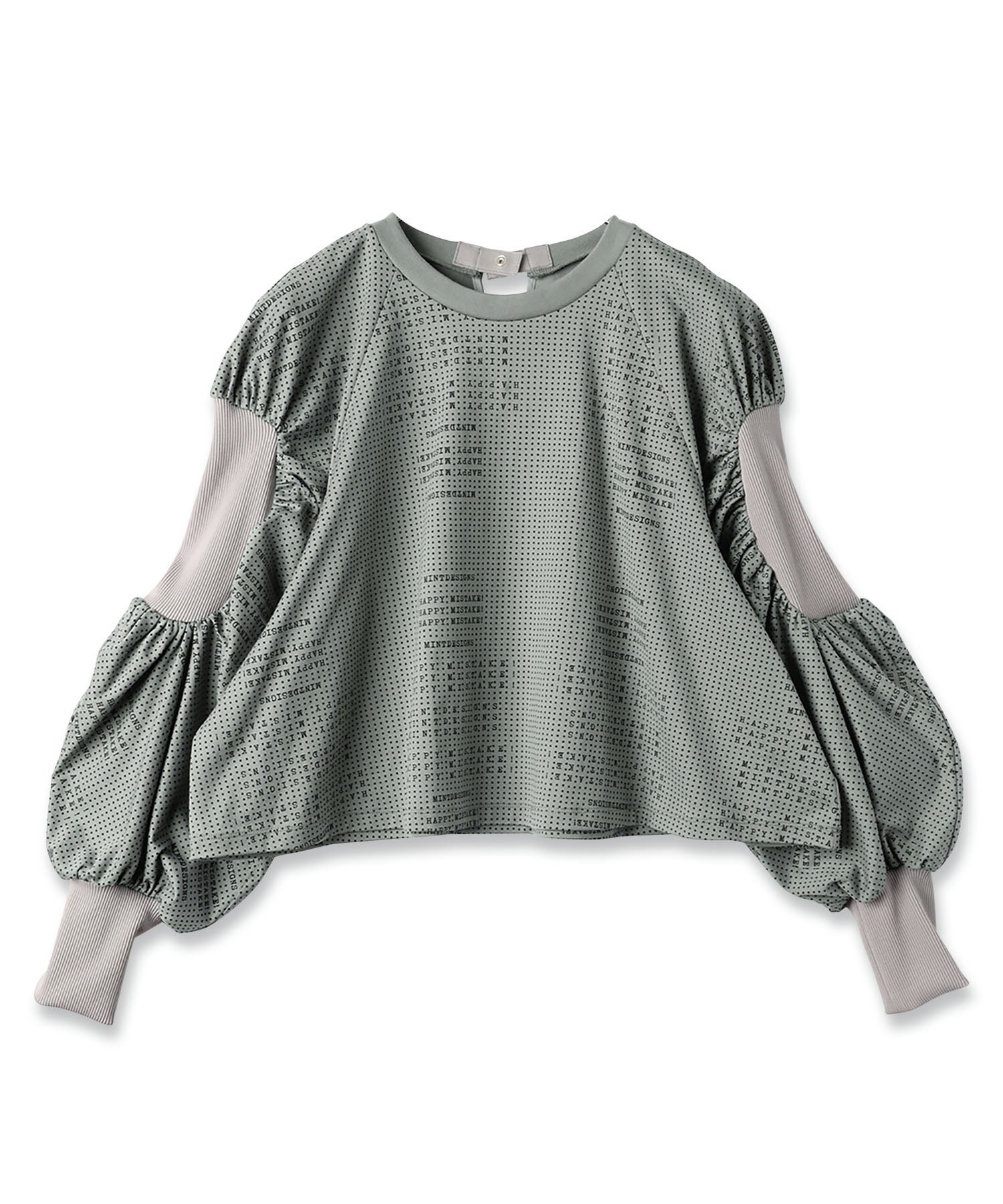 タイプライターのドットとタイプ文字で柄を構成し、綿天竺を八王子のプリント工場にて顔料でハンドプリントを施しました。