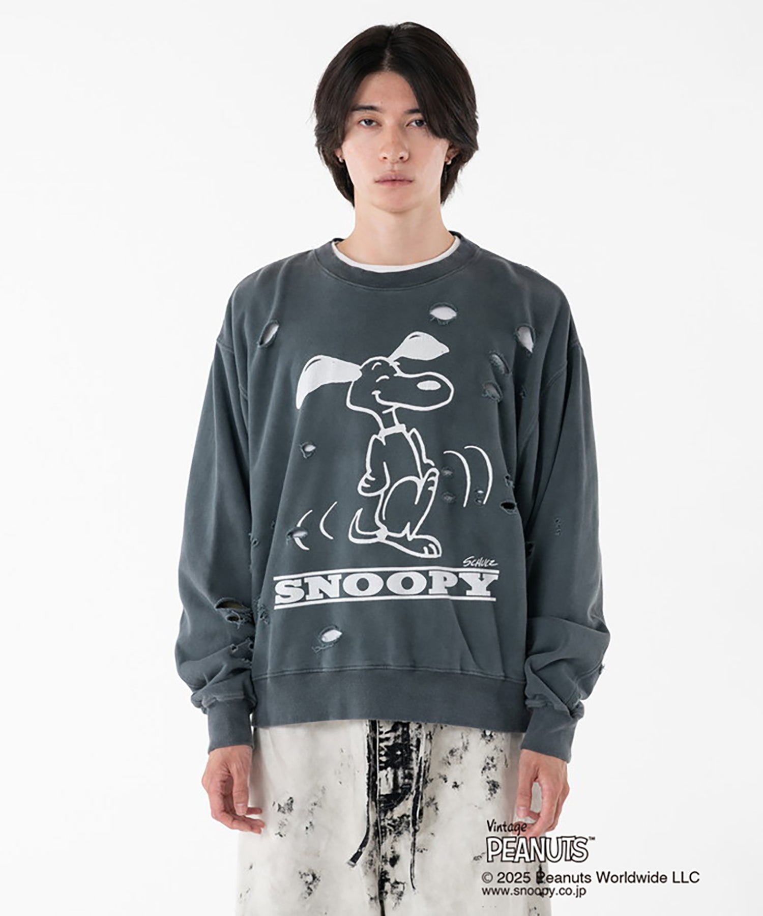 PEANUTSxDISCOVERED DAMAGE PIGMENT DYED SWEAT