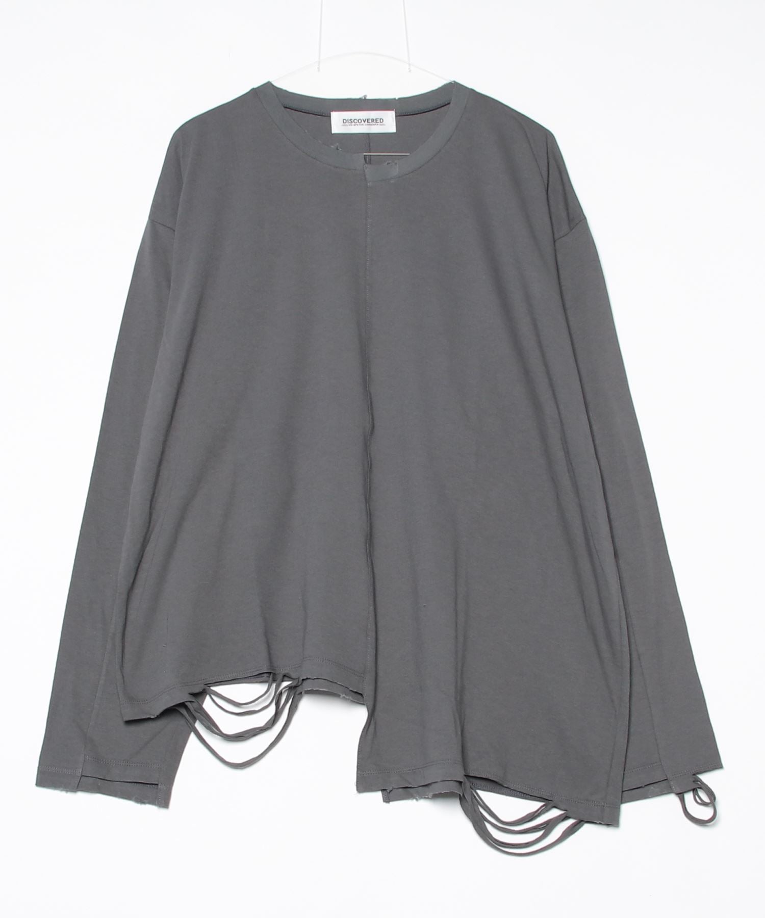 アシンメトリーなフォルム、ハードなダメージ加工を施し、着古したような雰囲気を閉じ込めています。