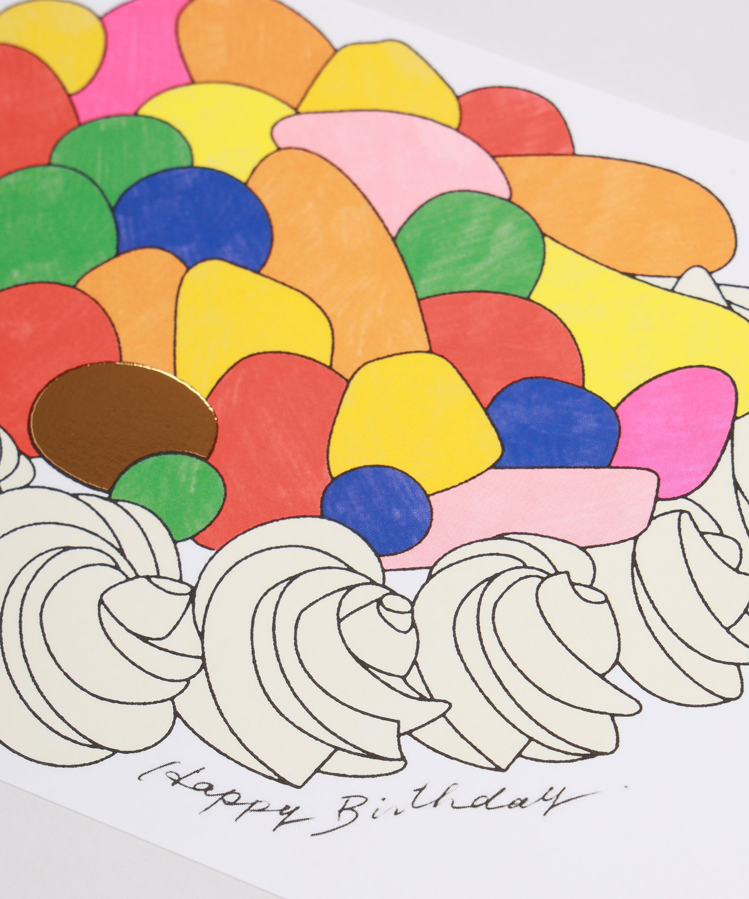 カラフルなフルーツケーキが描かれたバースデーカードです。