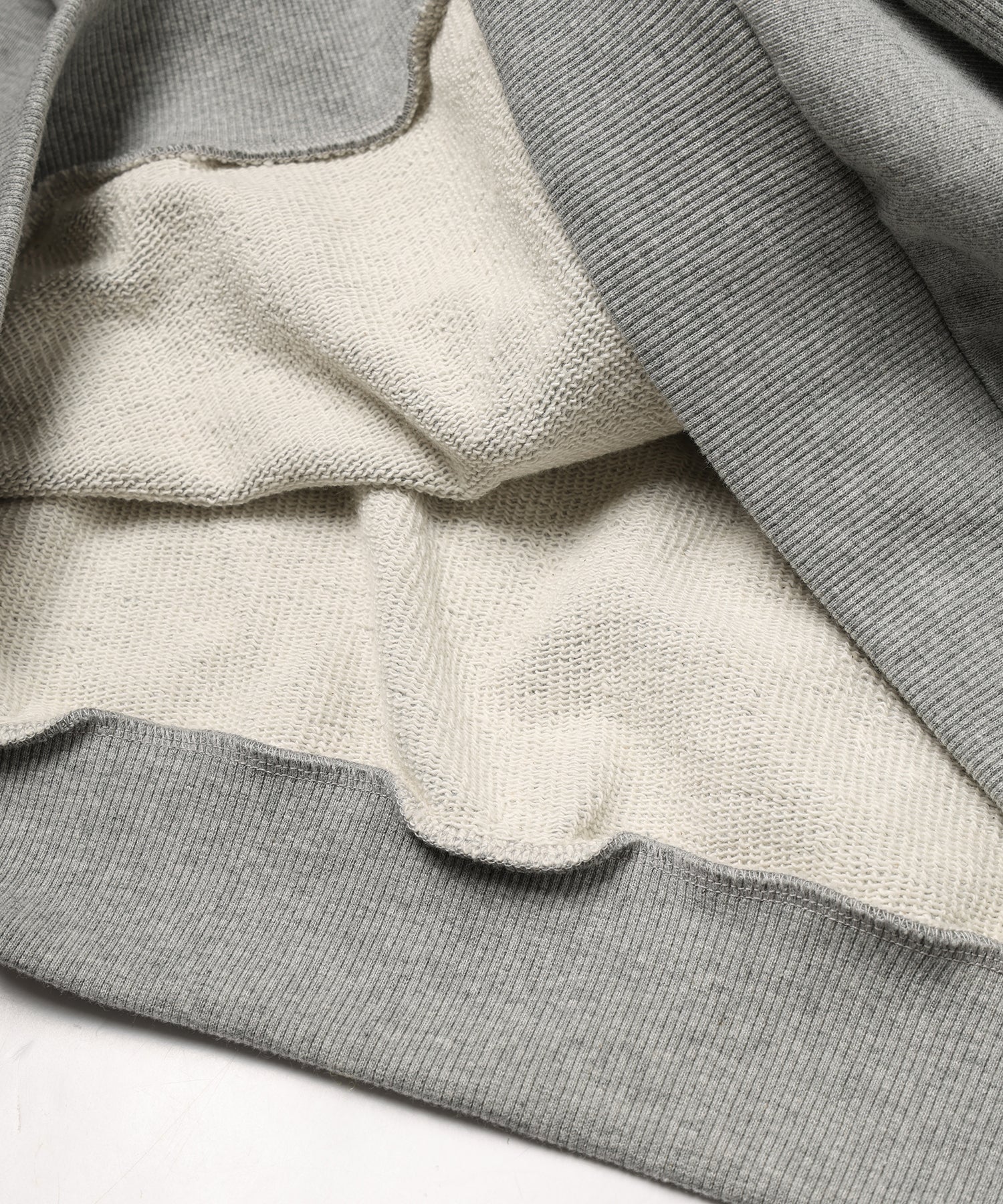 "適度な保温性と⾼い吸⽔性がある しっかりとした 20/10裏⽑を使⽤したスウェット。