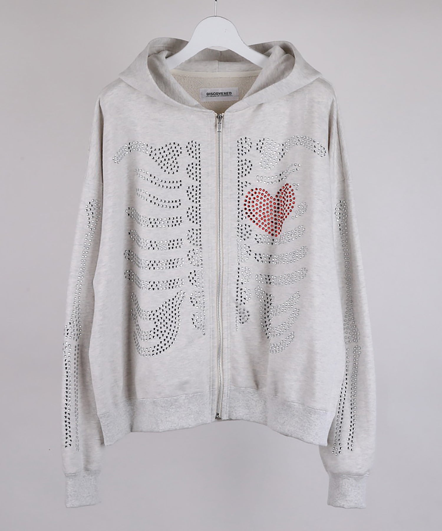 ゆとりのあるシルエット。ホットフィックス、煌びやかなスワロフスキーで贅沢装飾した骨格と心臓(ハート)に目を奪われます。