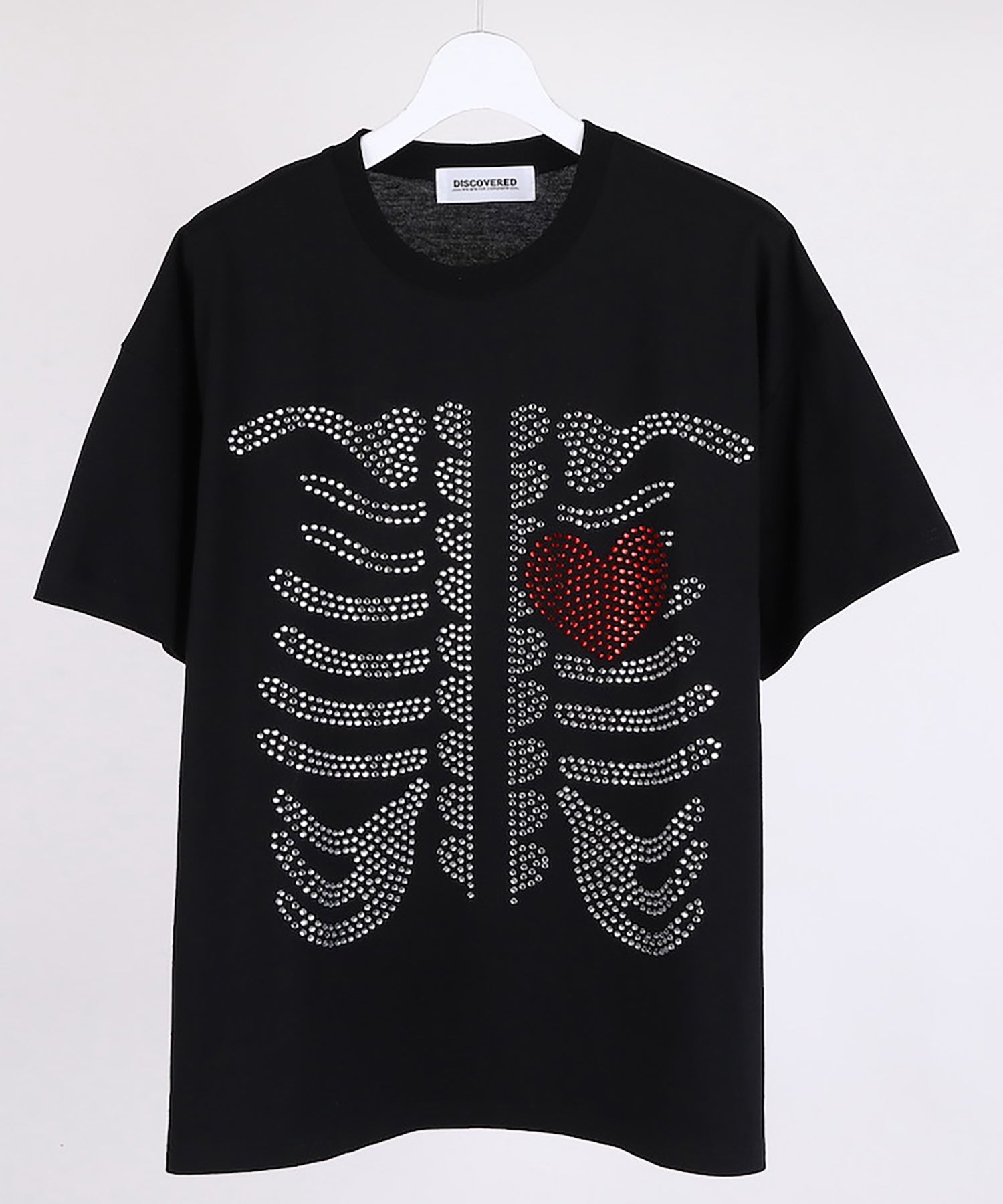 ゆとりのあるシルエット。ホットフィックス、煌びやかなスワロフスキーで贅沢装飾した骨格と心臓(ハート)に目を奪われます。