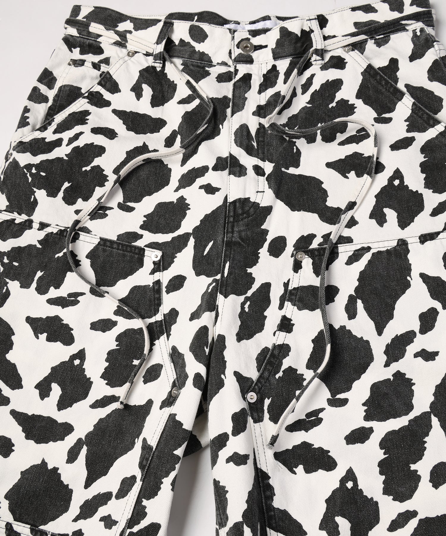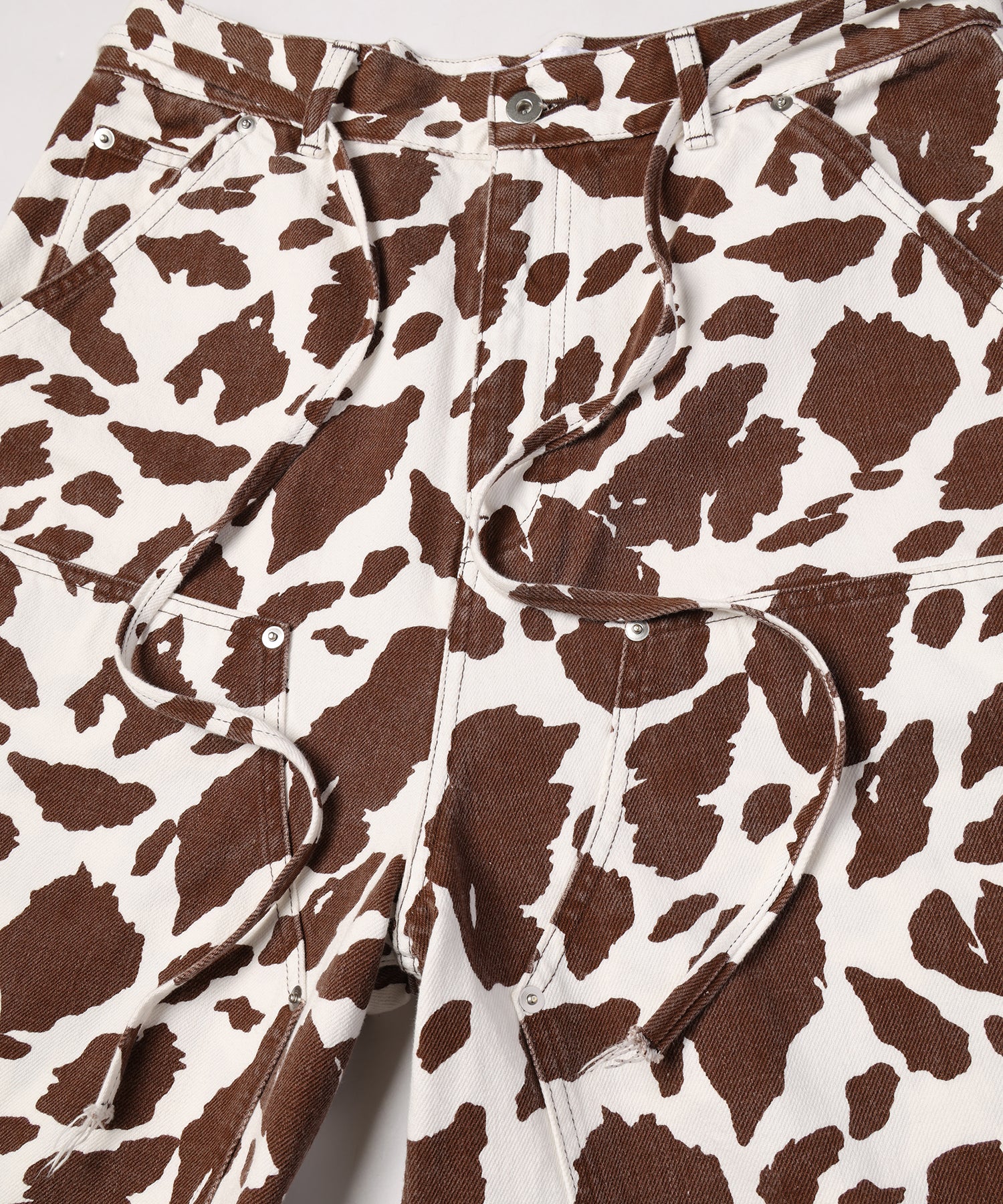 オリジナルテキスタイルで構成されたカウ柄をパンツ全体に閉じ込めました。